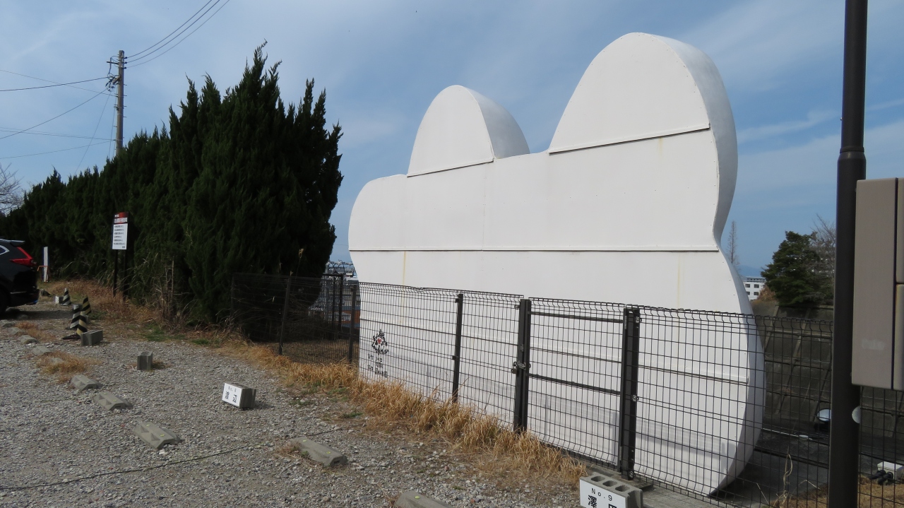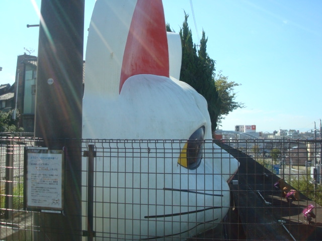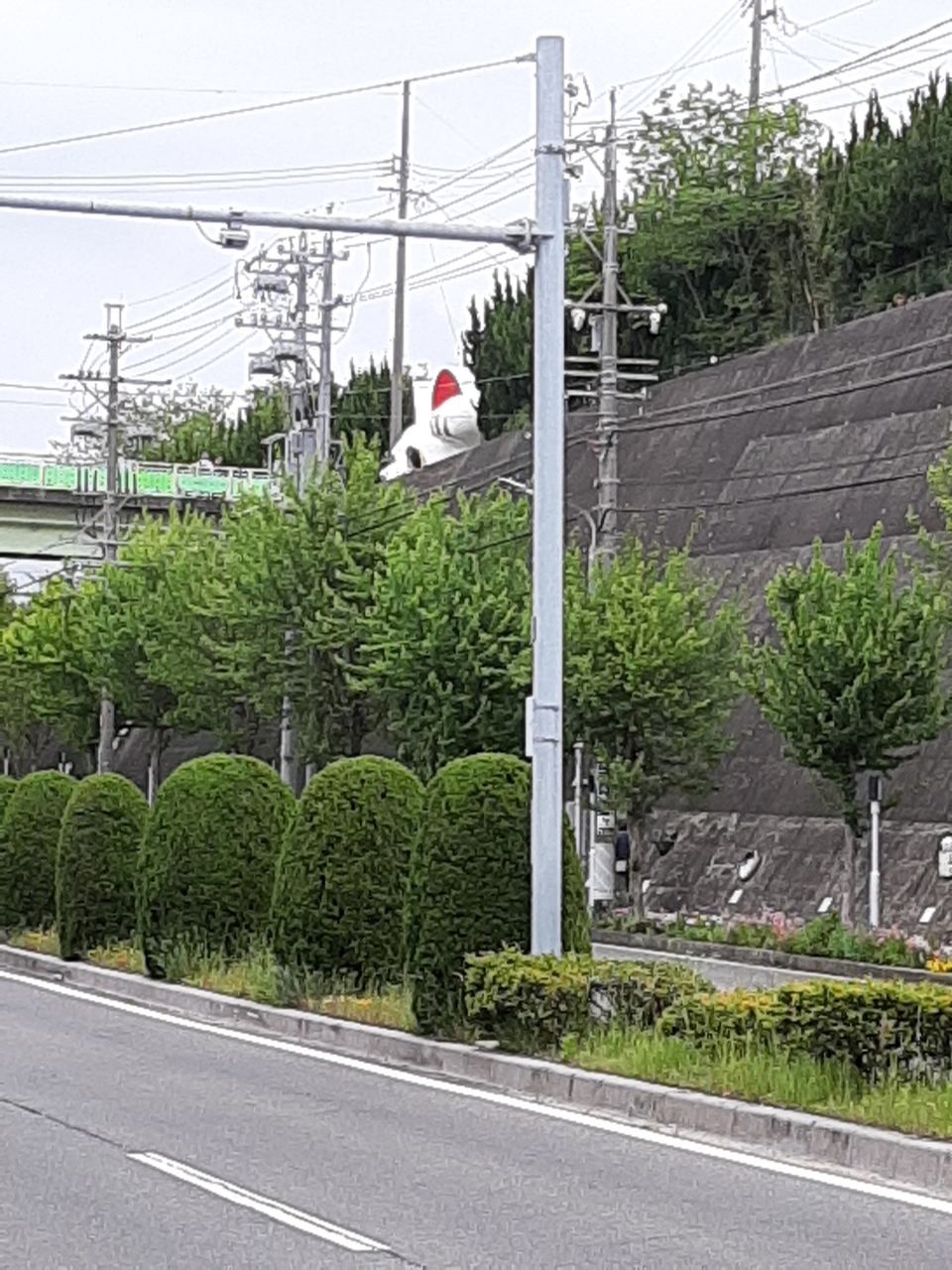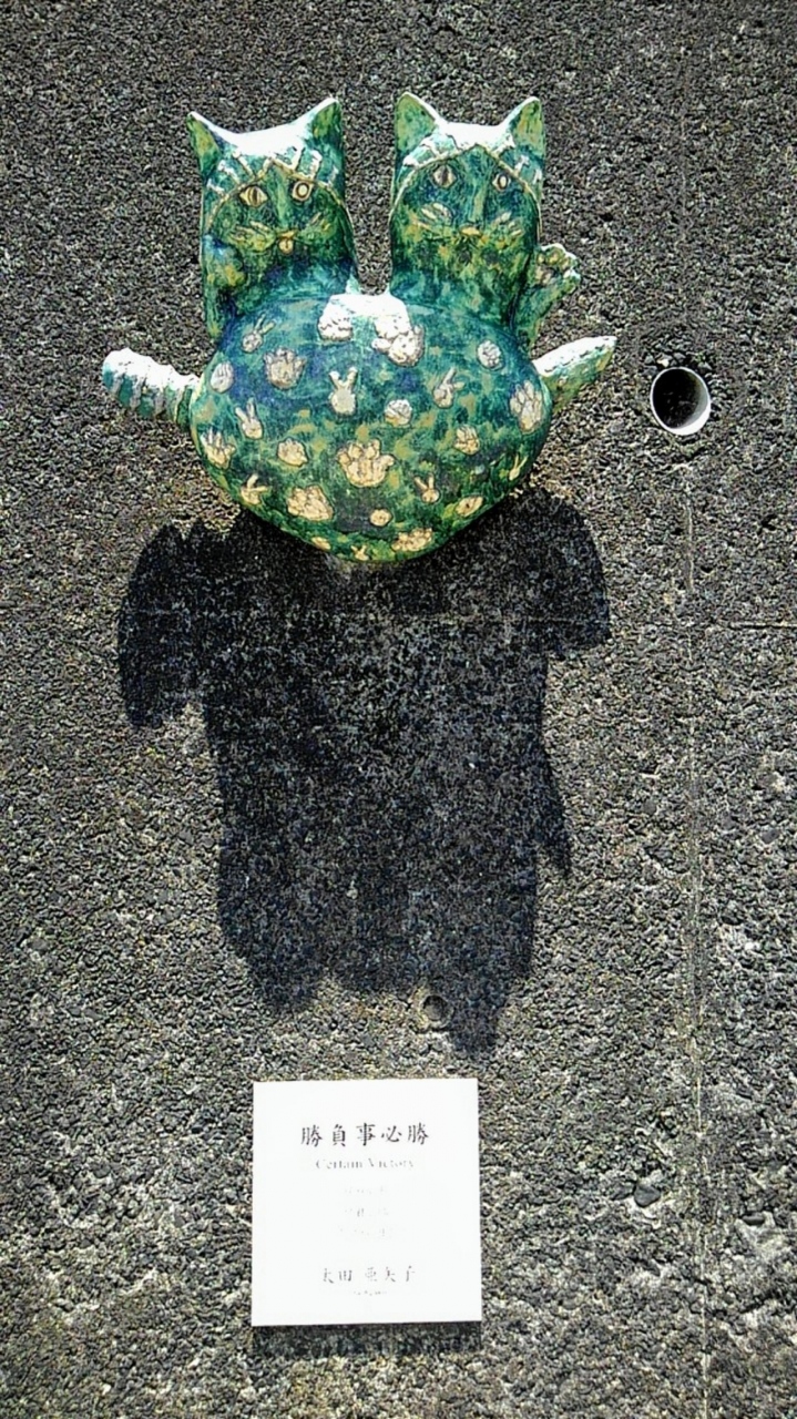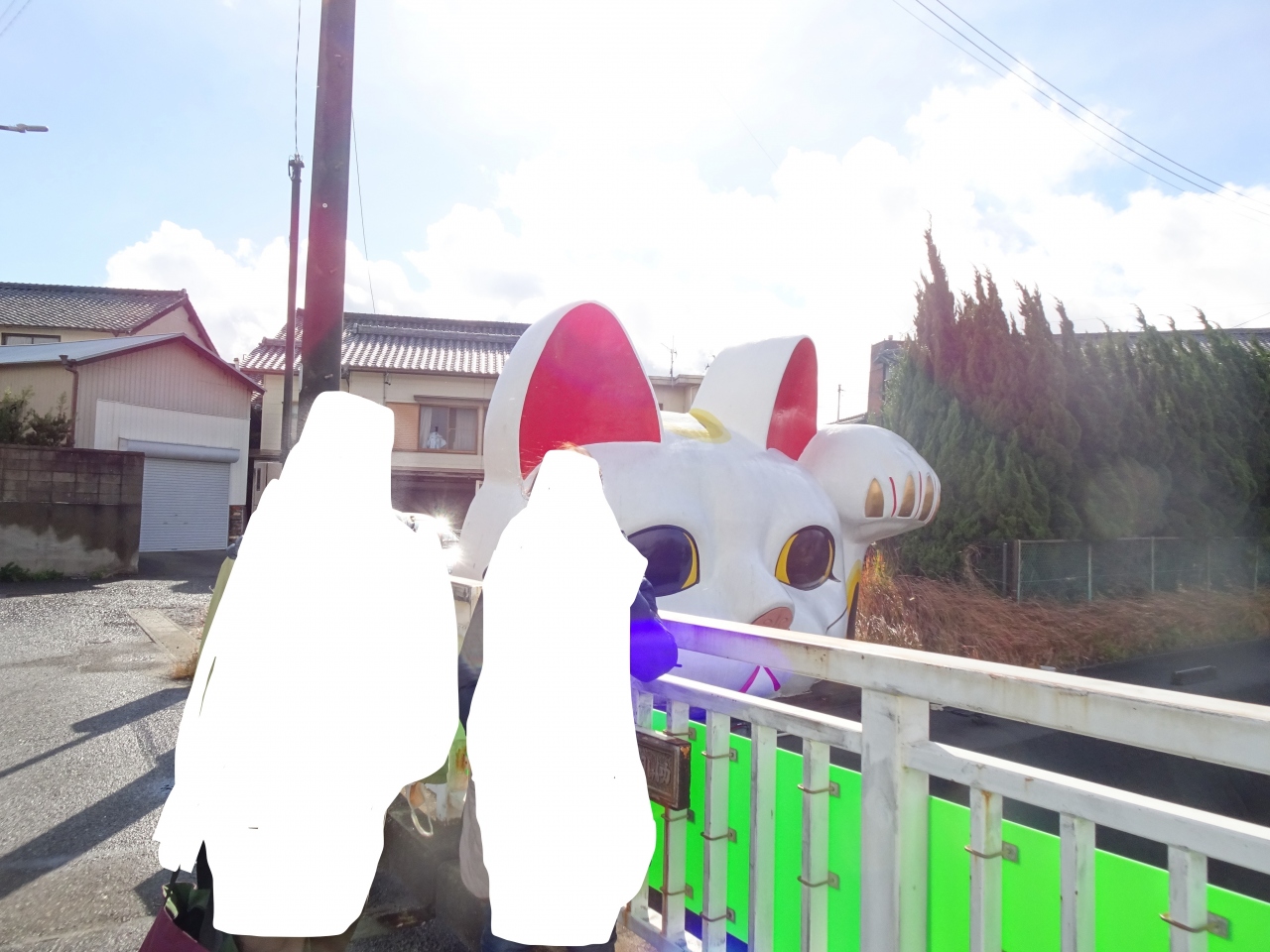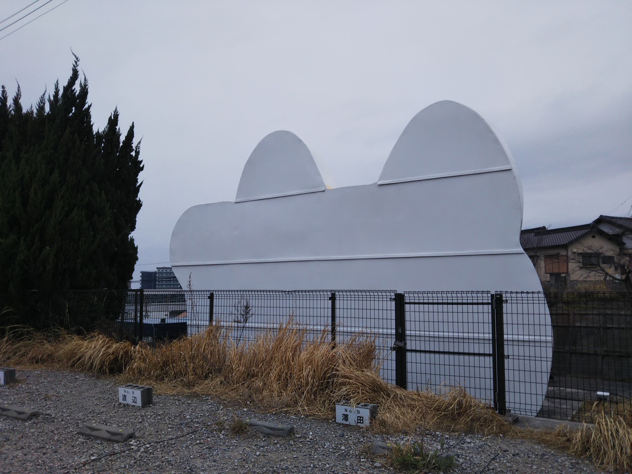 歩道橋の上にいる常滑名物の招き猫。ややハリボテ感有(笑)