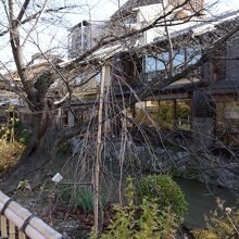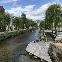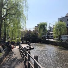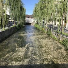 川岸の柳の街路樹が美しい