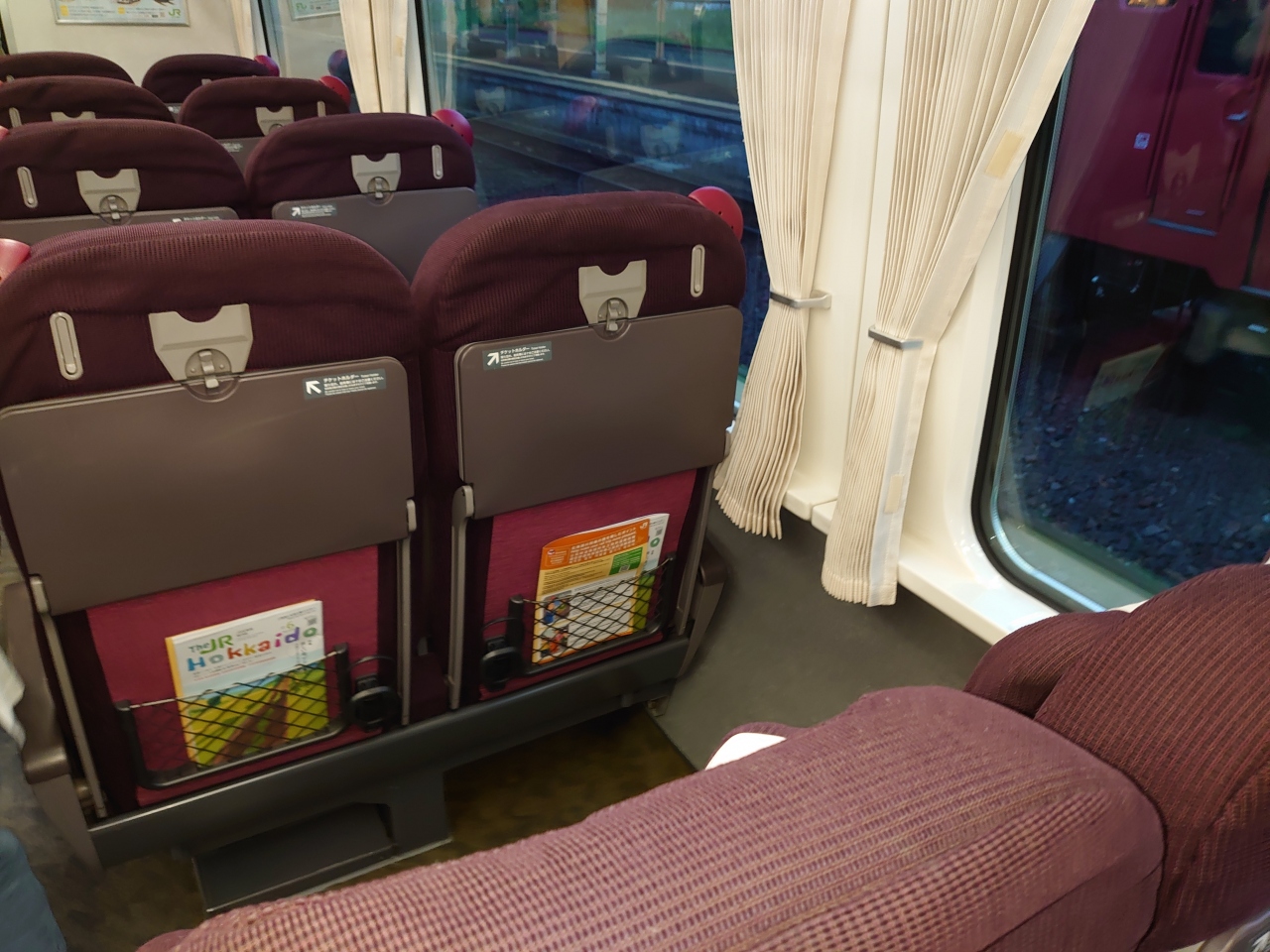 指定席の場合、当日の10時10分現在、所々誰も座らない2人掛けシートがありましたが、自由席の場合、滝川到着の時点で相席なしで座れる2人掛けシートは僅か1ヶ所のみで、相席を含む2人で座る席もそれなりに目立ちました。
