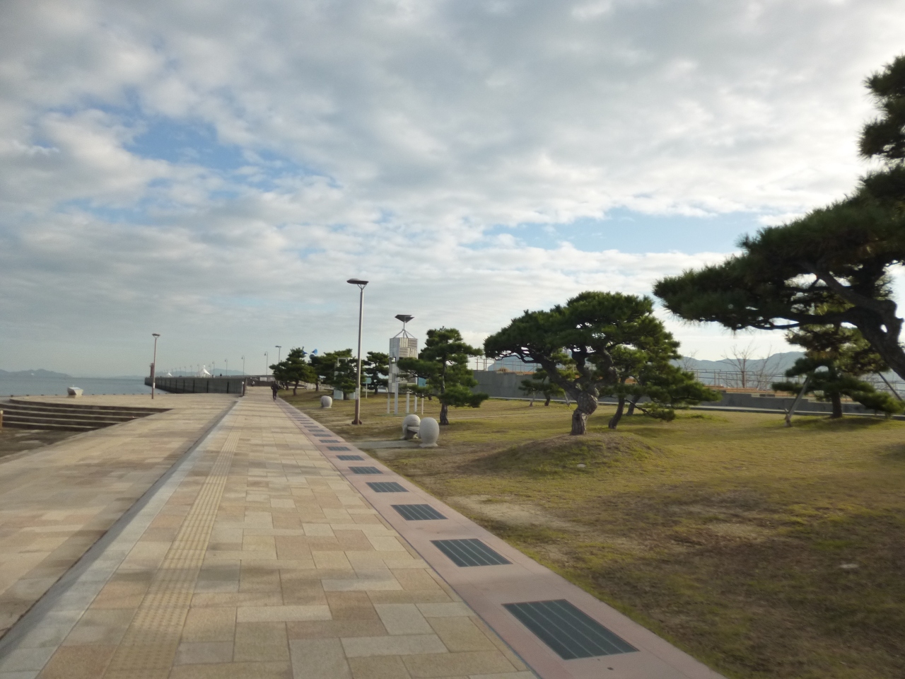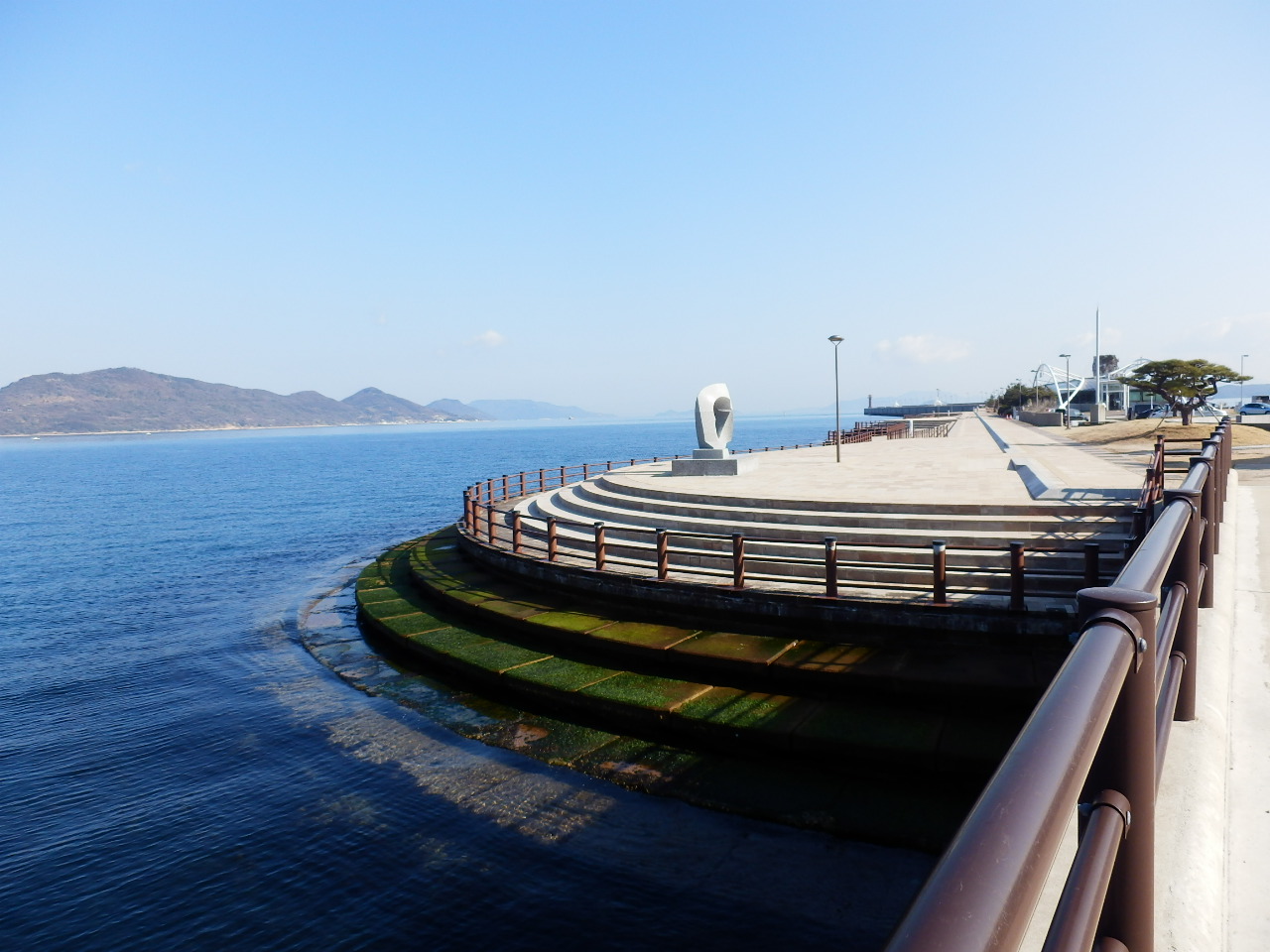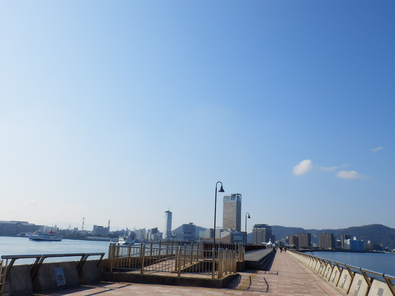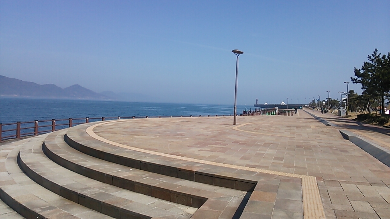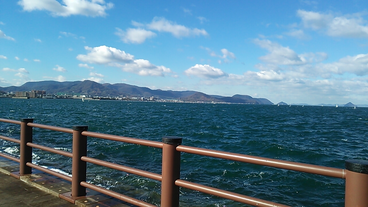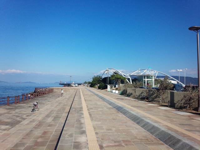 高松駅から徒歩5分少々で瀬戸内海の海の景色を楽しめますが、冬の場合かなり寒いです