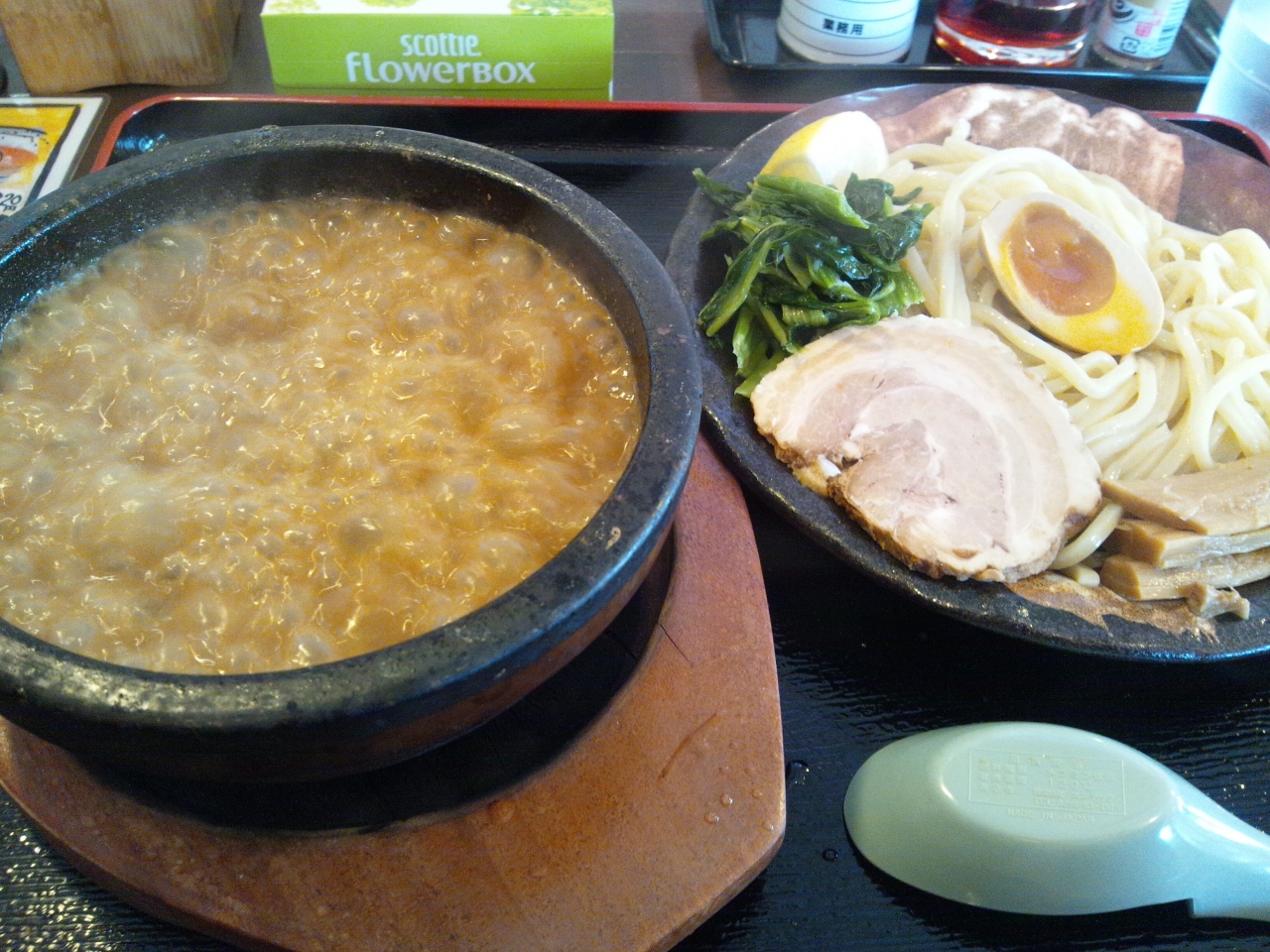 こちらのお店ははいつまでもスープが冷めないように石焼の器にスープが入ってきます。