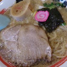 太い麺がスープにしっかり絡まります。美味しいです。
