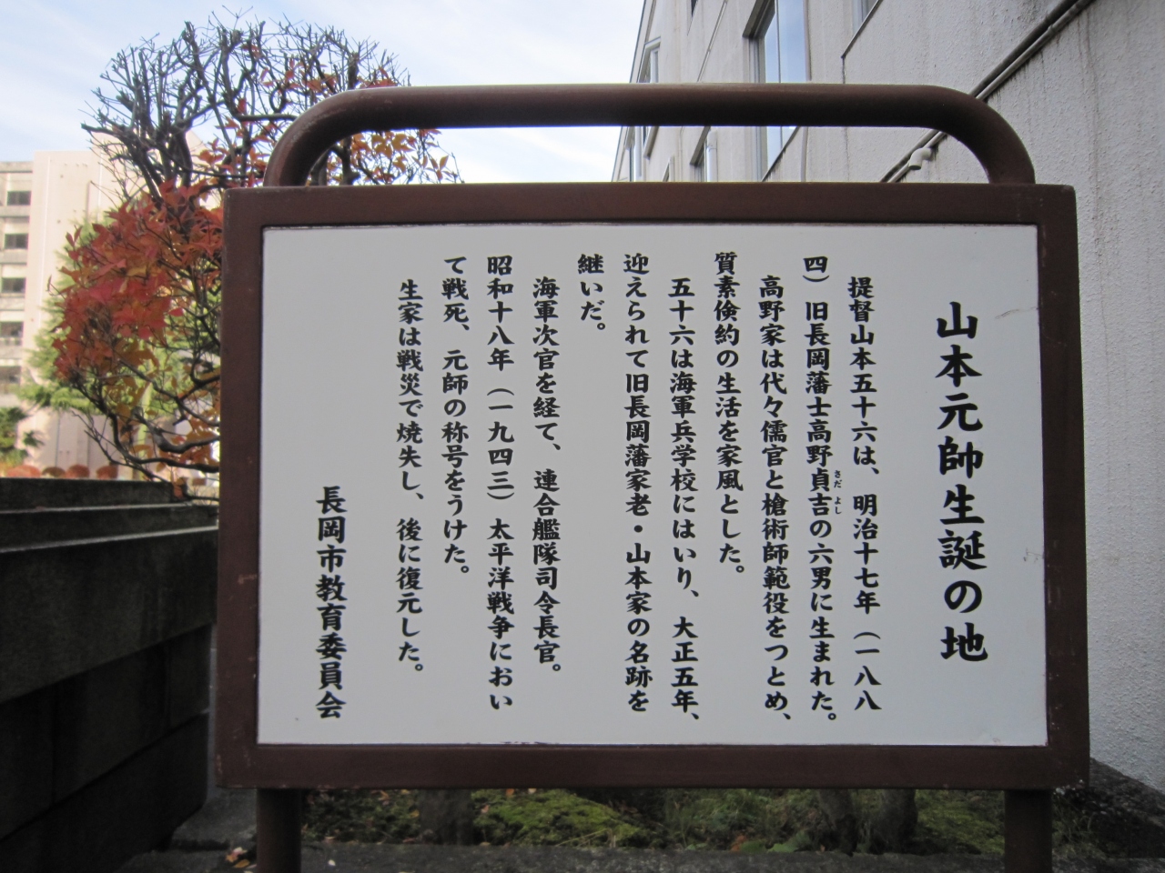 山本五十六の生誕地で市に土地を寄贈、そこを記念公園として整備したそうです。入口の右側門柱には山本元帥誕生地、左側は山本記念... 続きを読む公園と表示板があり、公園入口左側に2階建て生家を復元、公園奥の中央に胸像が聳え立っていました。生家に入ることが出来ます。無料ですが、月曜日に行ったため開いていませんでした。以前来た時は、1階には仏壇、常在戦場の額、霞ヶ浦の湖底から引き上げられた胸像の原型を基に制作された大きなレプリカ、2階は急な階段を上り右側が五十六が勉強した二畳の部屋、自由に見学する事ができて、胸像のレプリカはインパクトがありました。公園では近くの保育園児が遊んでいました。 閉じる