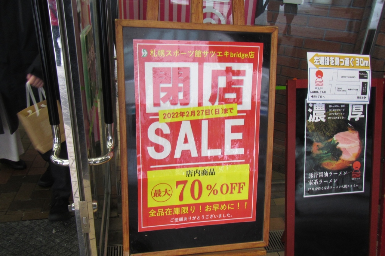 札幌駅近辺でまとまった品揃えのあるスポーツ用品店です。駅西口を出てヨドバシカメラ隣りの高架下、サツエキBridgeにありま... 続きを読むす。札幌駅にいて、忘れ物など何らかの理由でスポーツ用品が急に必要になった場合に特に便利ですが、そうでなくても、駅から離れたスポーツデポや、大通、狸小路などのスポーツ用品店まで行かなくてもよいので便利です。