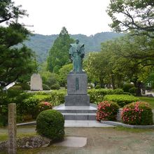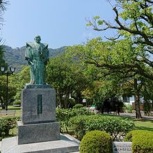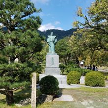 公園の入り口に立つ銅像