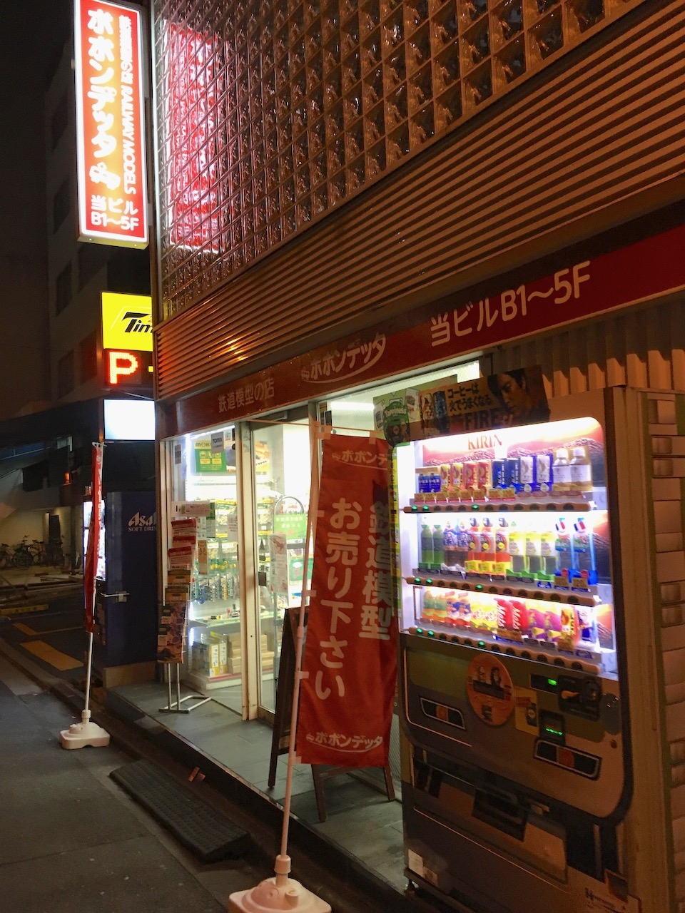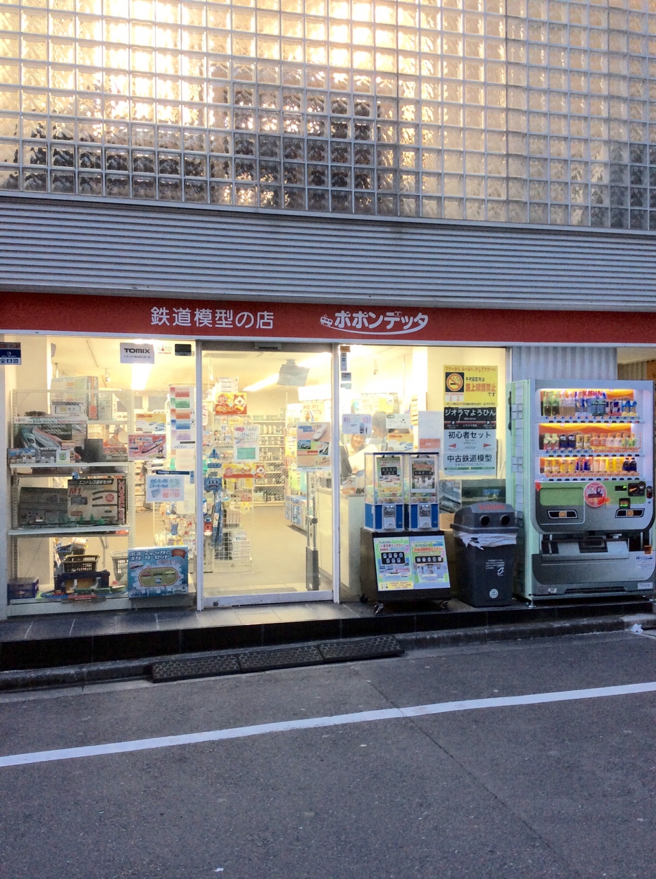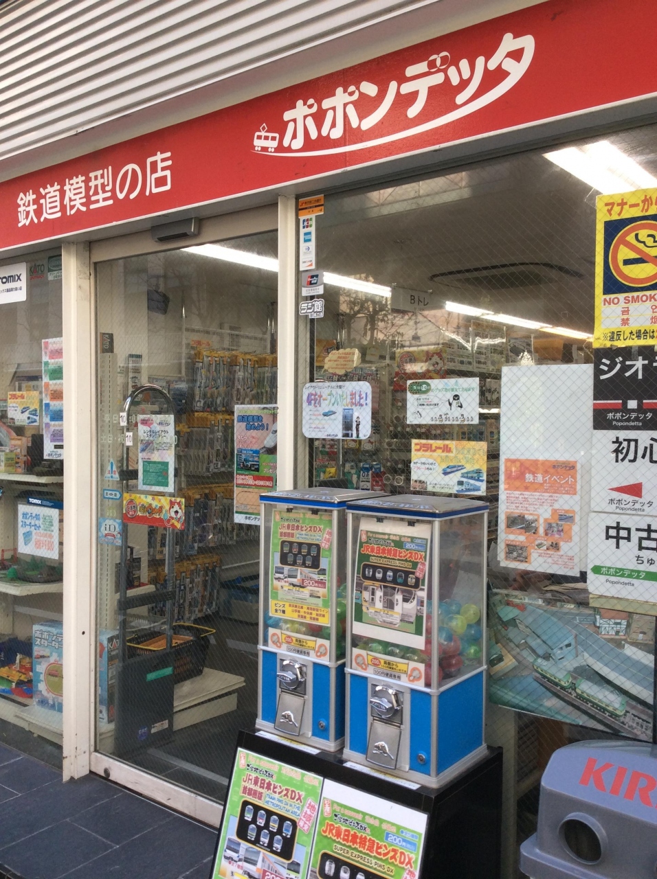 ポポンデッタの名前は、パプアニューギニアのオロ州にある町、ポポンデッタ固有の熱帯魚を社長が飼っていたことから命名したそうです。実質的な本店である秋葉原店は2003年4月に開店しました。B1Fは外国型商品とHOゲージ、鉄道書籍、1階は鉄道グッズ、2階はNゲージ用のレール、3階はNゲージメーカーの車両とパーツ類、4Fは中古品が置いてあり、特に2階の模型レイアウトは模型少年にはたまらない光景でしょう。