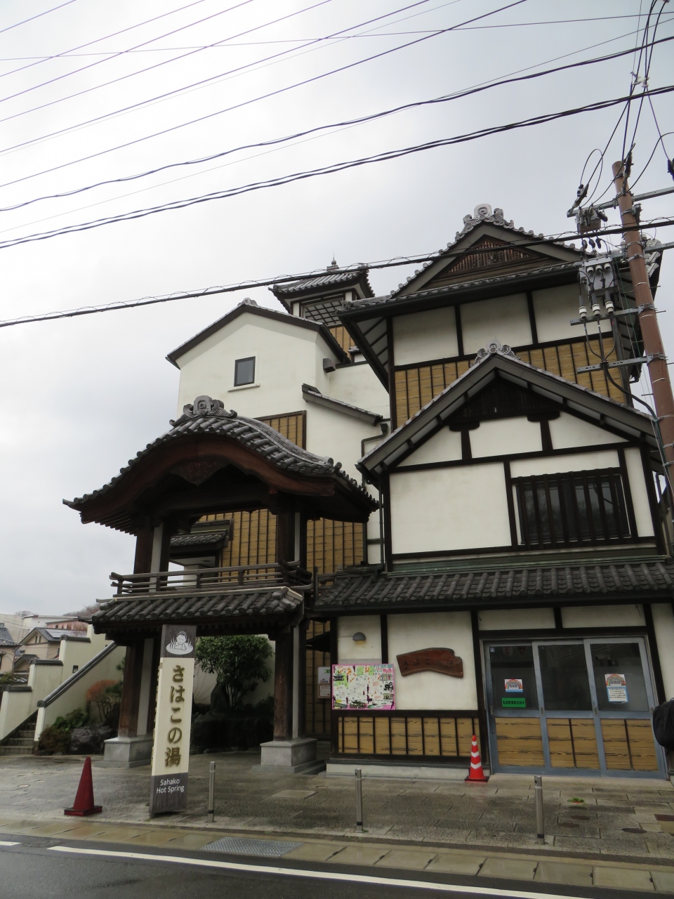 現在の「さはこの湯」は1995年に建造された江戸末期の建物様式を再現した純和風の建物で「さはこの門」、「火の見櫓」を配置したいわき湯本温泉の新たなシンボルとなっています。