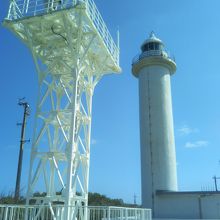 青空に真っ白な灯台が眩しい