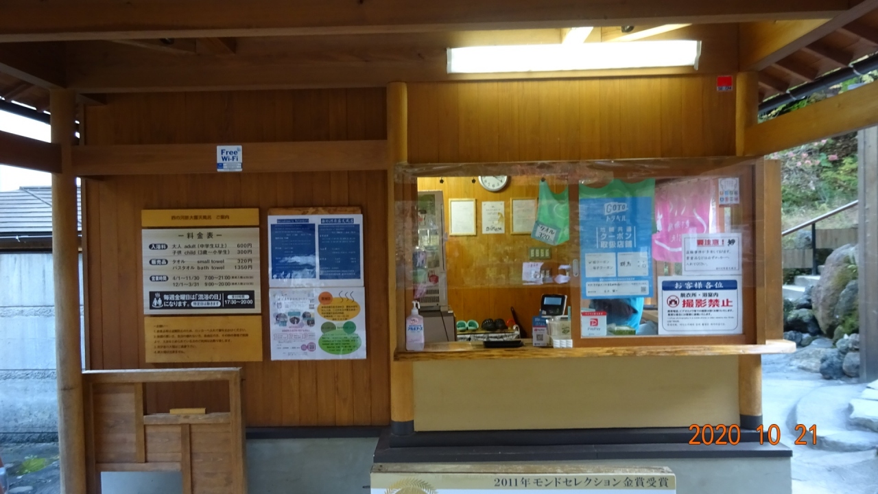 営業は7時からだと勘違いしていた。河原公園が魅力的な場所だったら1時間待ちも我慢できた。宿泊先の温泉もPH値1.5だったので、露天風呂に入湯できなかったこと自体は残念だったが、外から露天風呂を様子を眺め諦めて共同浴場の千代の湯に向かう。