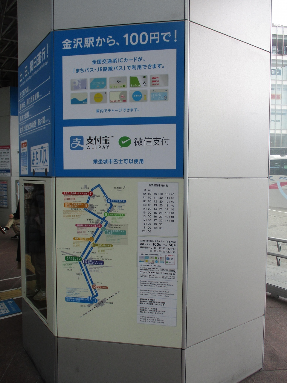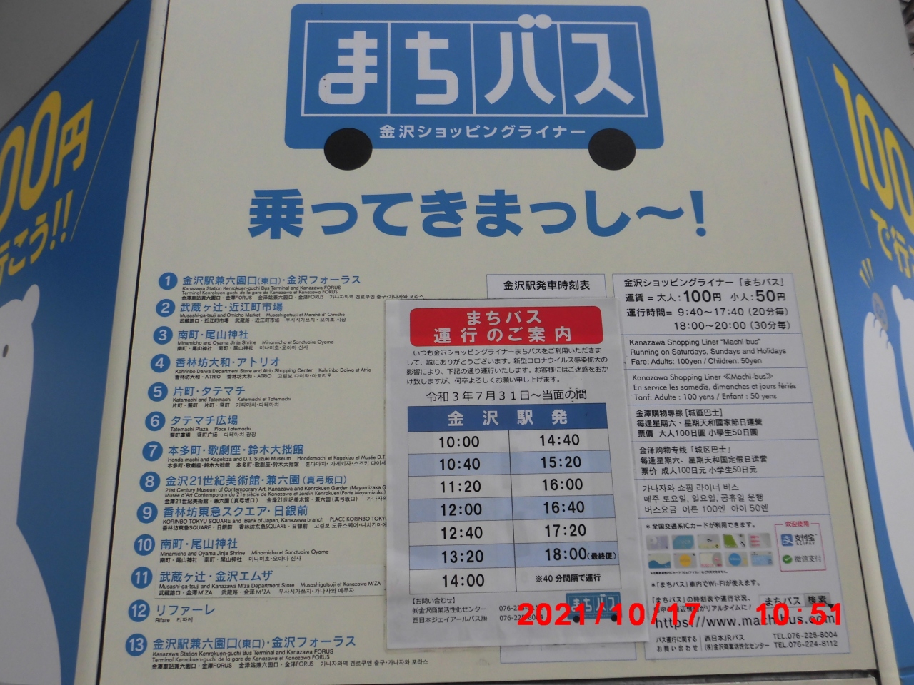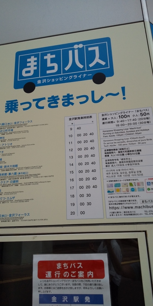 まちバスは週末のみ20分毎運行で100円で、JR西日本バスの運行なので、スイカなど交通系ICカードが使えますが、北陸交通バ... 続きを読むスの金沢一日乗車券と電子カードアイカは使えません。
