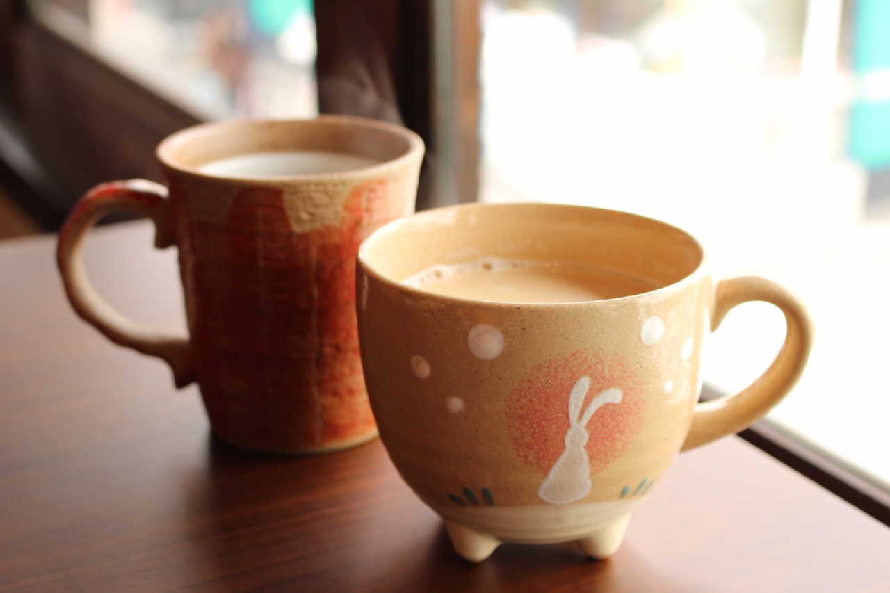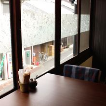 入り口右手(窓際)は4人がけの席、左手は2人がけ(一部3人がけ)の席になっています。
