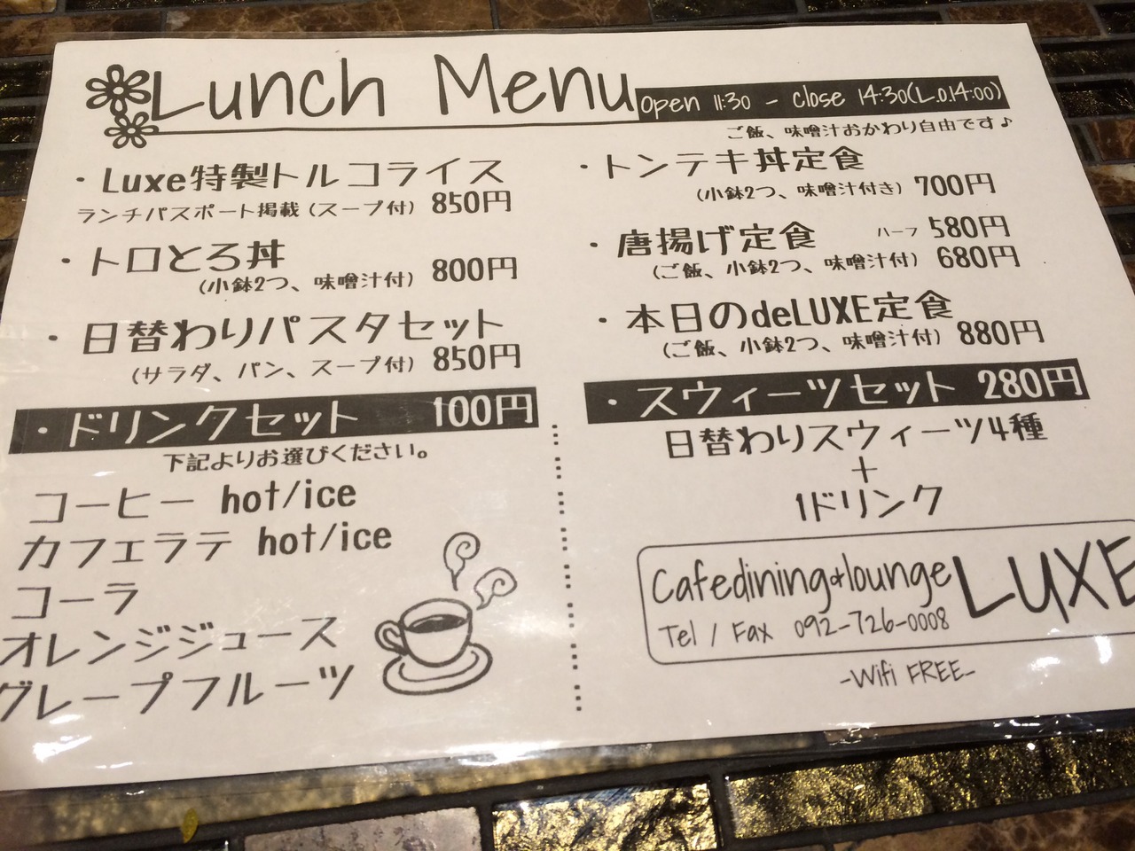 ランチドリンクが100円でつけられるのも魅力でした。 閉じる投稿日:2015/03/21