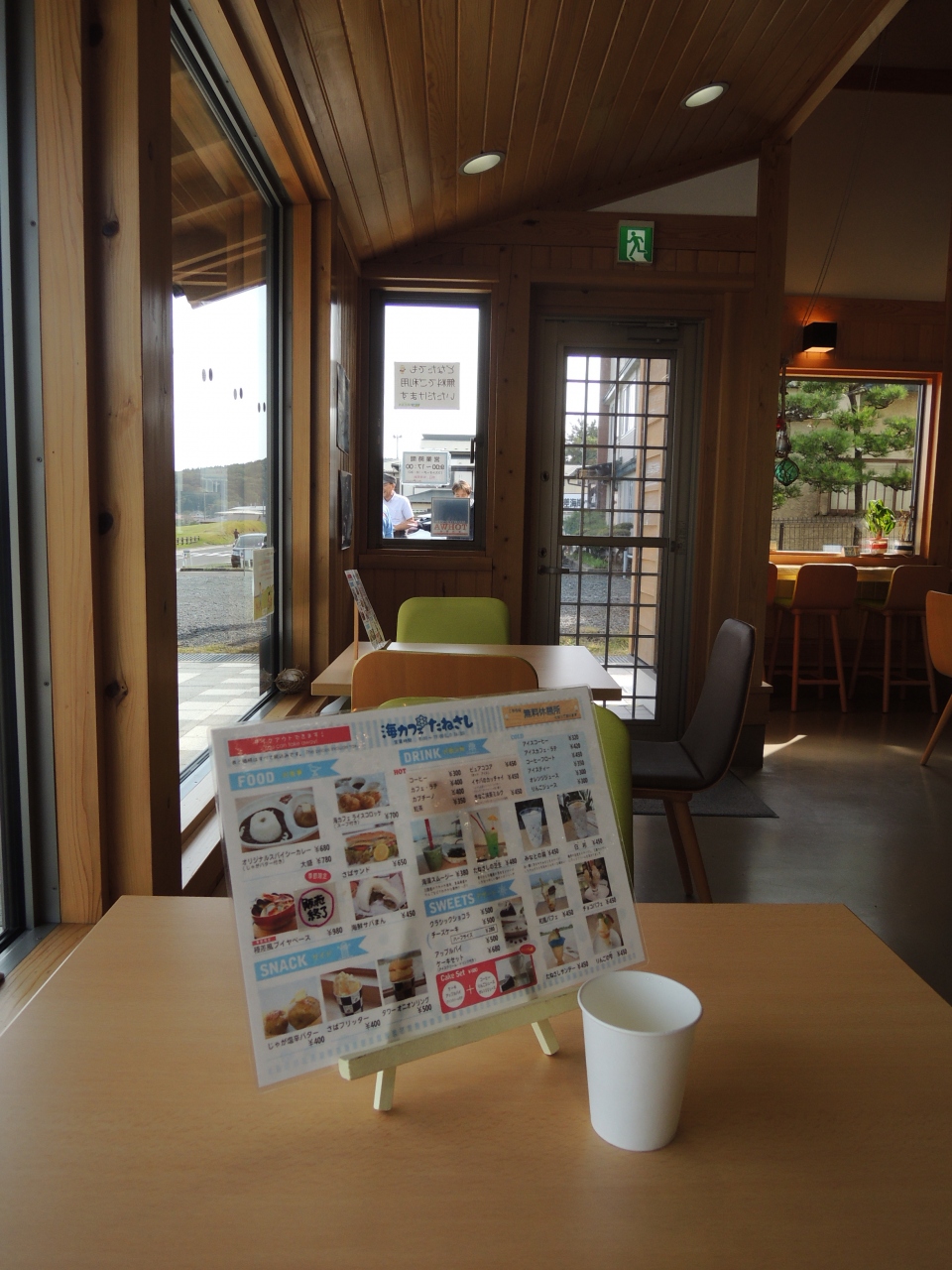 インフォメーションセンターすぐ脇には、種差海岸遊覧用のワンコインバスうみねこ号のバス停もあり。
