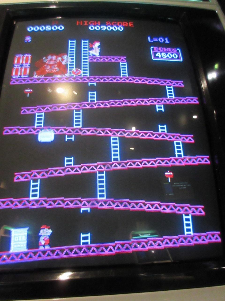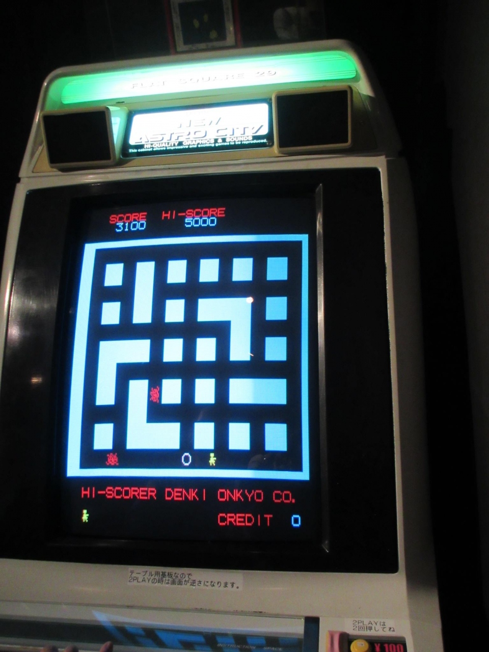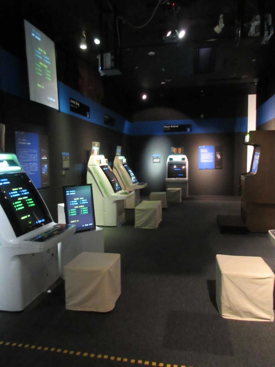デジタルゲームが誕生した頃のゲームを過ぎると、子供のころに遊んだ懐かしいゲーム達が並んでいます。しかもコインを入れずにプレイが出来ます。1970年代後半に流行ったインベーダーやパックマンやニューラリーX、ディグダクなどなど・・・。昔のゲームはシンプルで面白かったです。(ゲーム黄金期。)