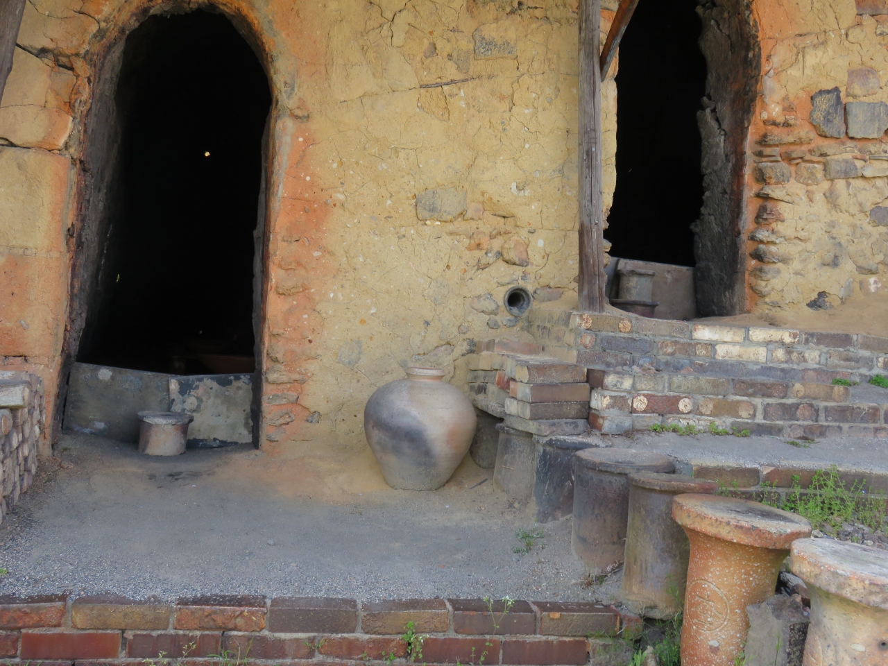 大きな登窯を眺めながら、コーヒーブレイク ♪