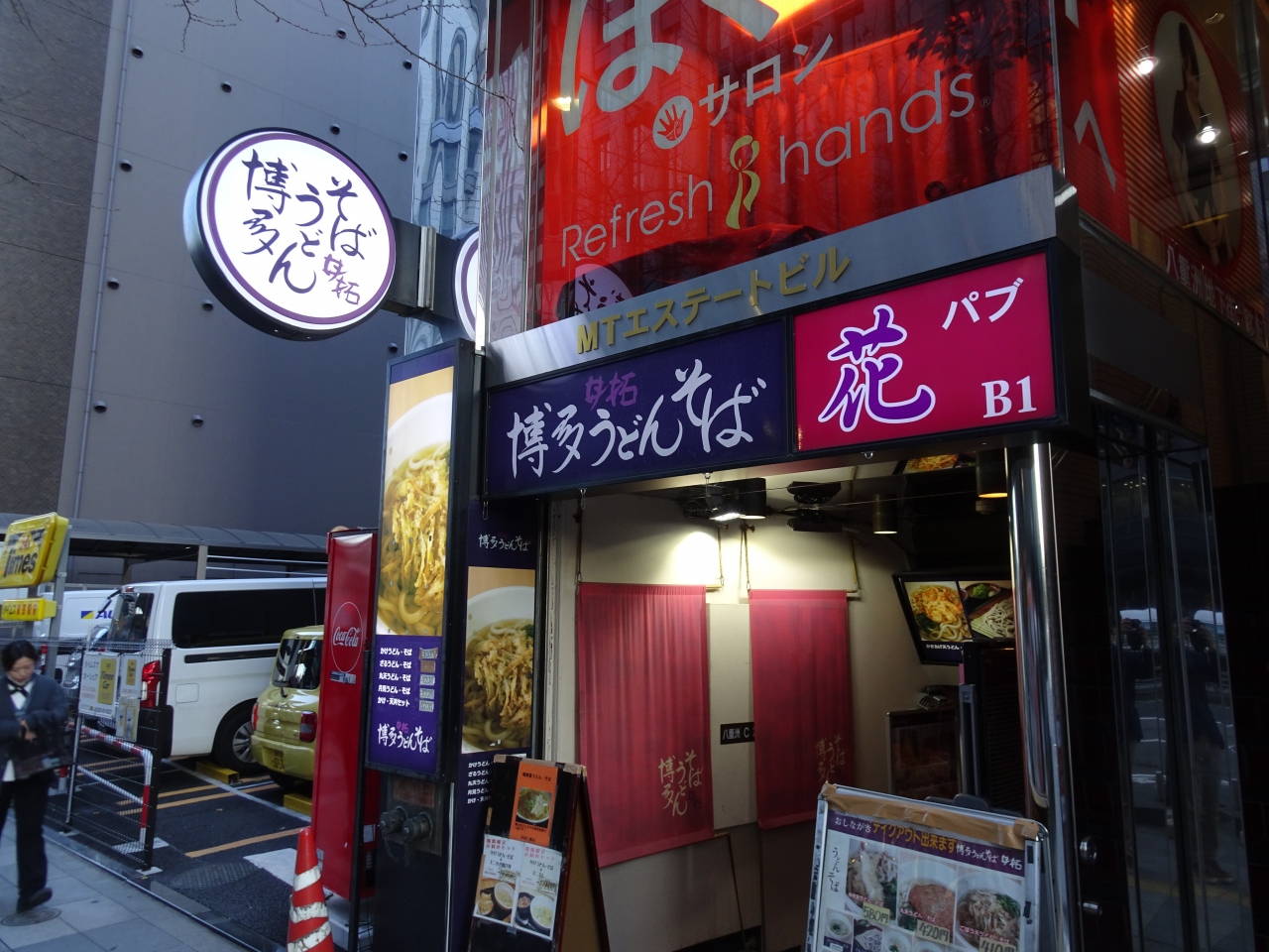 東京で本格的な博多うどんが、スタンド(立ち食い)で食べられるお店。東京駅八重洲口から徒歩。成田空港からの東京シャトルの降り... 続きを読む場の前にあります。博多生まれのお店ではなく、藤沢で30年の歴史のあるお店とのこと。さすがにコシのない博多うどんだけでは東京で勝負しずらいのか、コシのある通常タイプと、柔らかい博多うどんから選択。ただし、博多うどんは50円増し(大盛は120円増し)になってしまうのが残念ですが、博多うどんには九州産の小麦粉を使用しているとのこと。汁は鯖やアゴなどと昆布出汁を混ぜたもので、黄色い透き通ったもので、本格的です。天ぷらも、まる天、鶏天、ごぼ天など、博多のうどん屋さんで出会うものばかり。ネギは乗せ放題で、天かすにはごぼうも結構入っていて嬉しい。ごぼ天うどんが410円とリーズナブルなのも嬉しいです。 閉じる