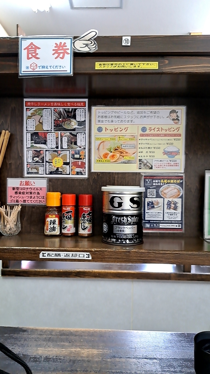 青森では煮干しラーメンが有名と知り、青森駅ビル1階にあるネットで評判の当店を訪れました。平日午後1時すぎでしたが3... 続きを読む316;4人の行列、10分ほど並んで入店。事前に店舗前の食券機で食券を買うシステム、よくある形式です。