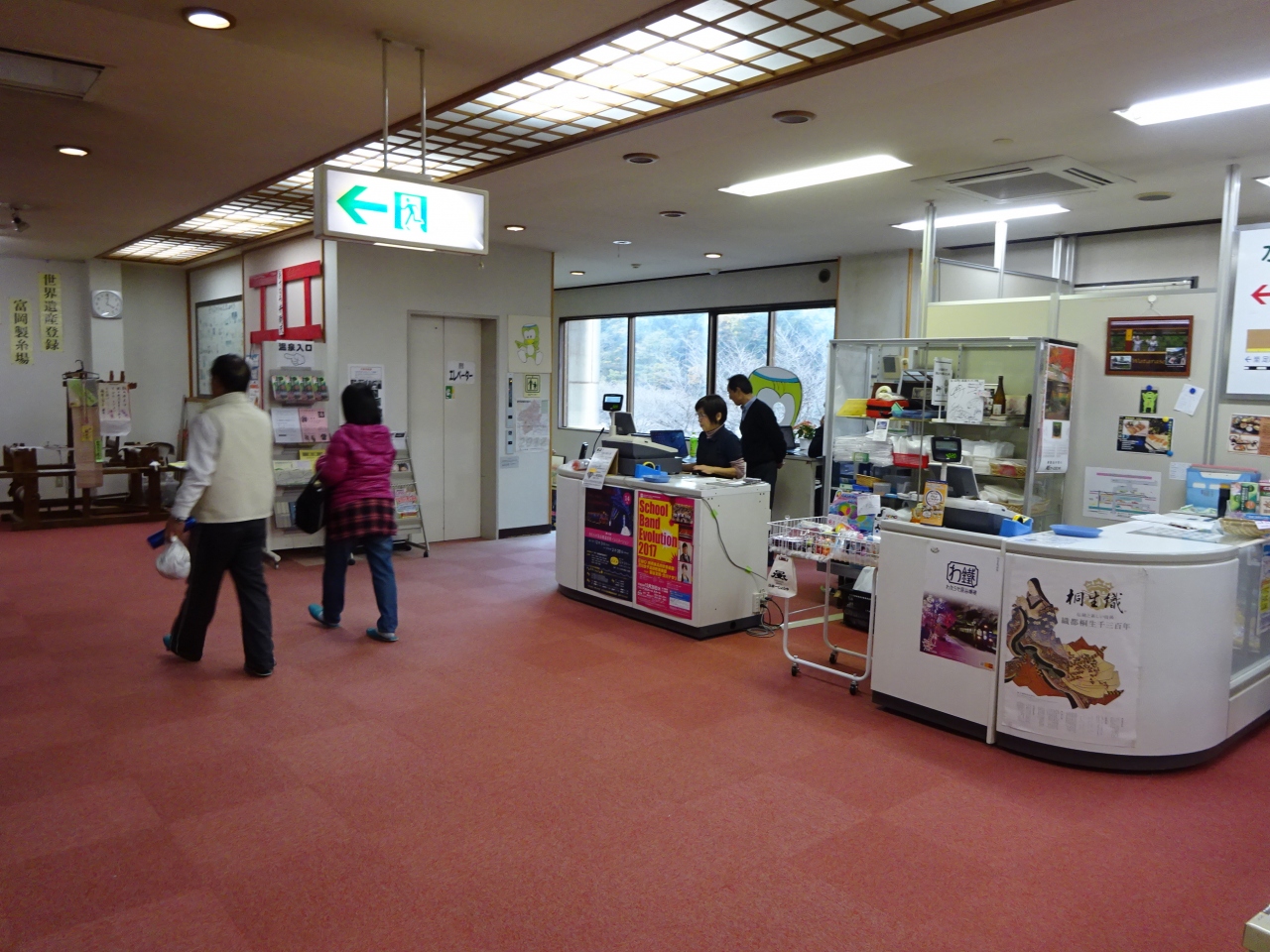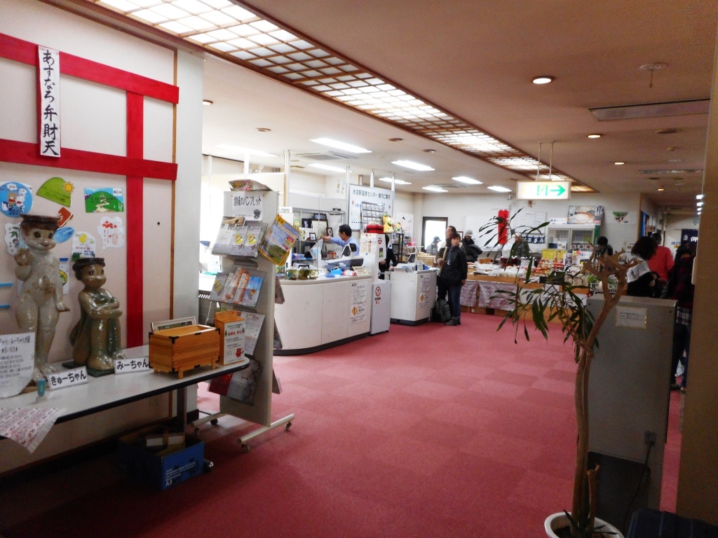 中に入ると、フロントも広く、お土産物のコーナーもあります。時間帯があわなかったので行きませんでしたが、その奥には食堂もあったようです。