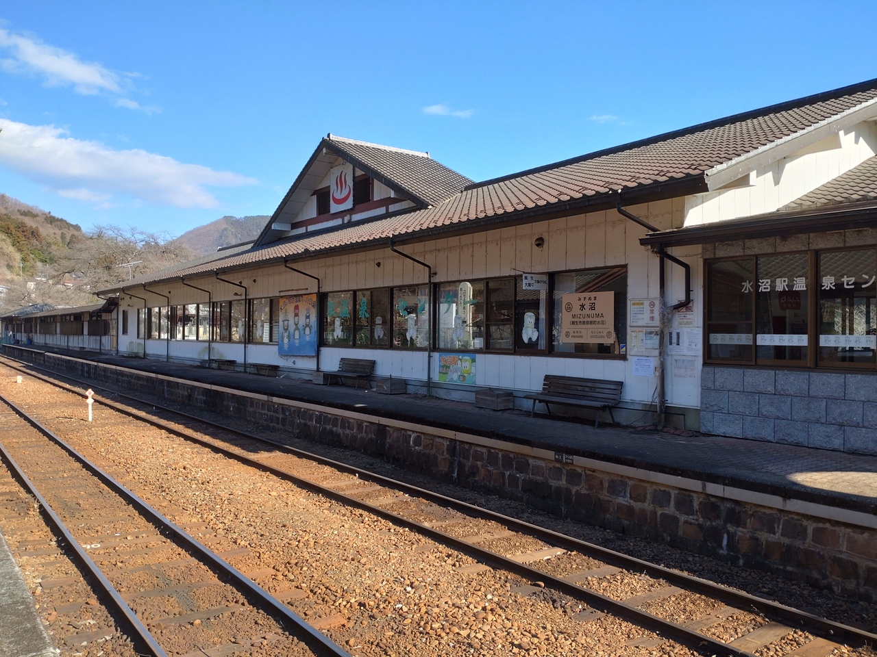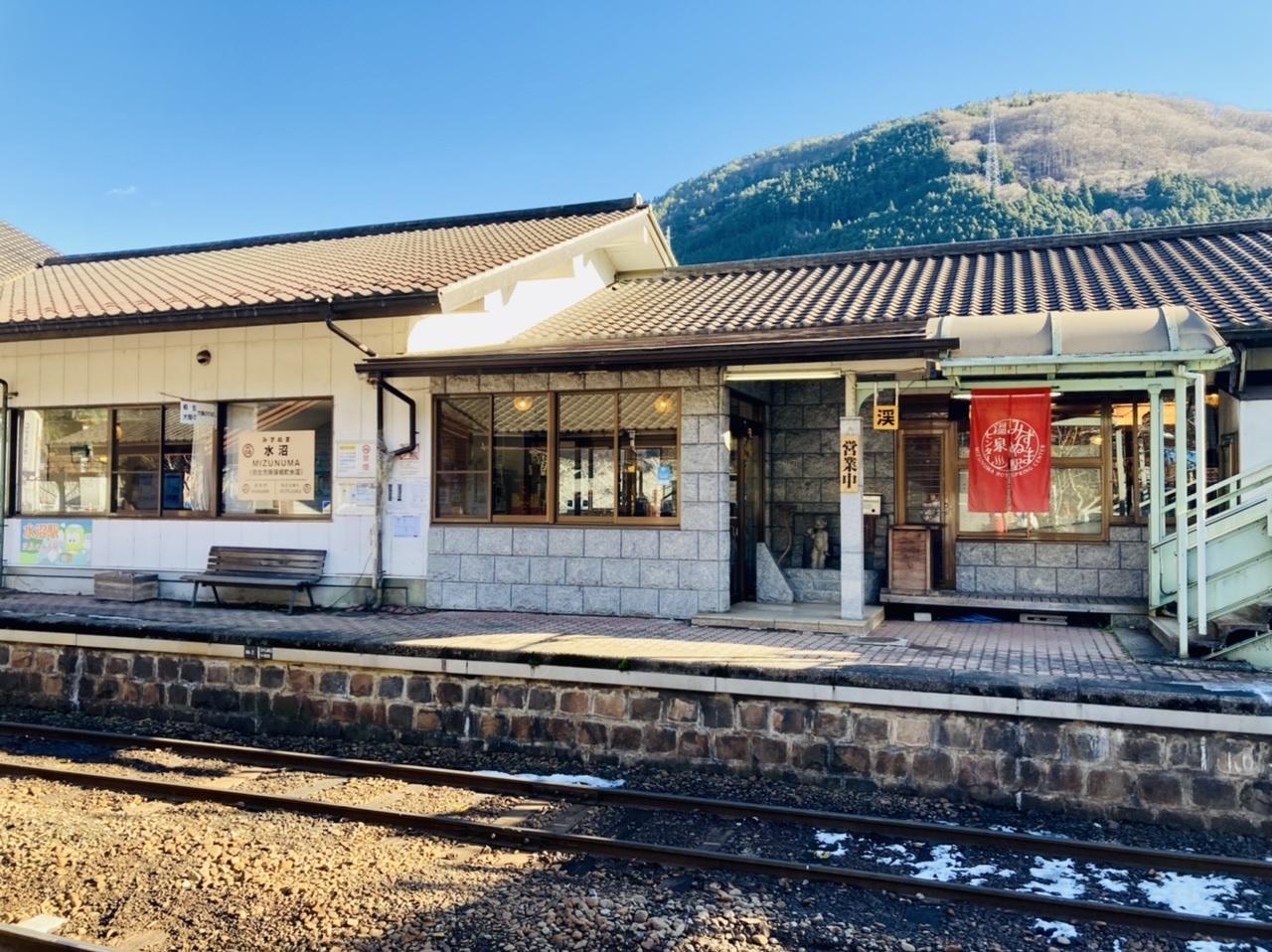 わたらせ渓谷鐵道・水沼駅の上りホームにくっついている温泉です。