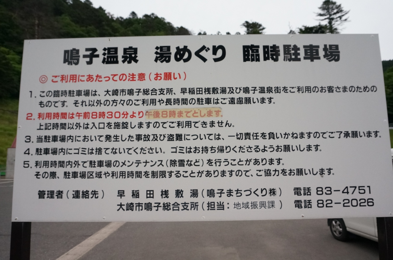 鳴子の湯めぐりには温泉街の中ほどにある「湯めぐり臨時駐車場」が便利です。 大崎市鳴子総合支所(旧鳴子町役場)、早稲田桟敷湯... 続きを読むおよび鳴子温泉街を立ち寄る際に無料で駐車できます。