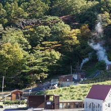 モクモクと白い湯気があがっていて温泉らしい雰囲気