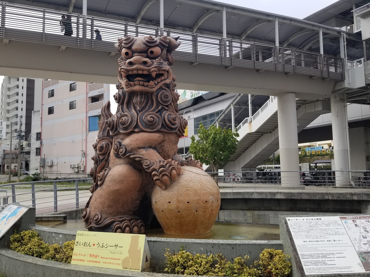 牧志駅近くのさいおんスクエア前にある巨大シーサー