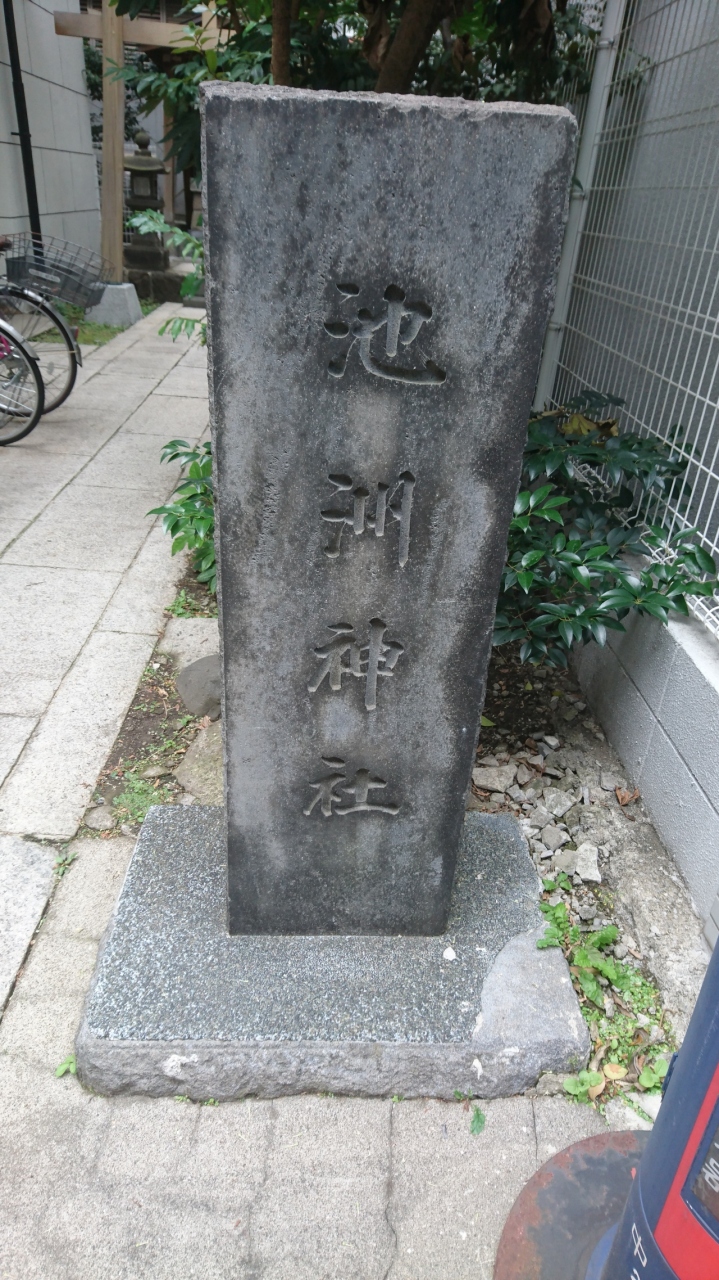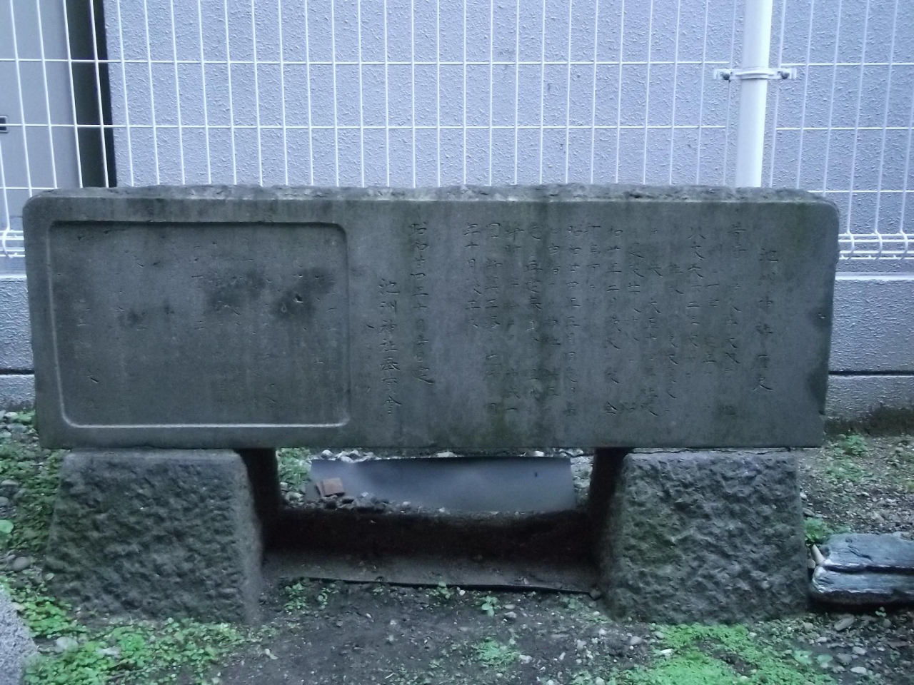 社殿の右手に、「池洲神社歴史」 と刻まれた昭和廿四年に建てた石碑があり、何とか読もうとしたが、これは無理だった。