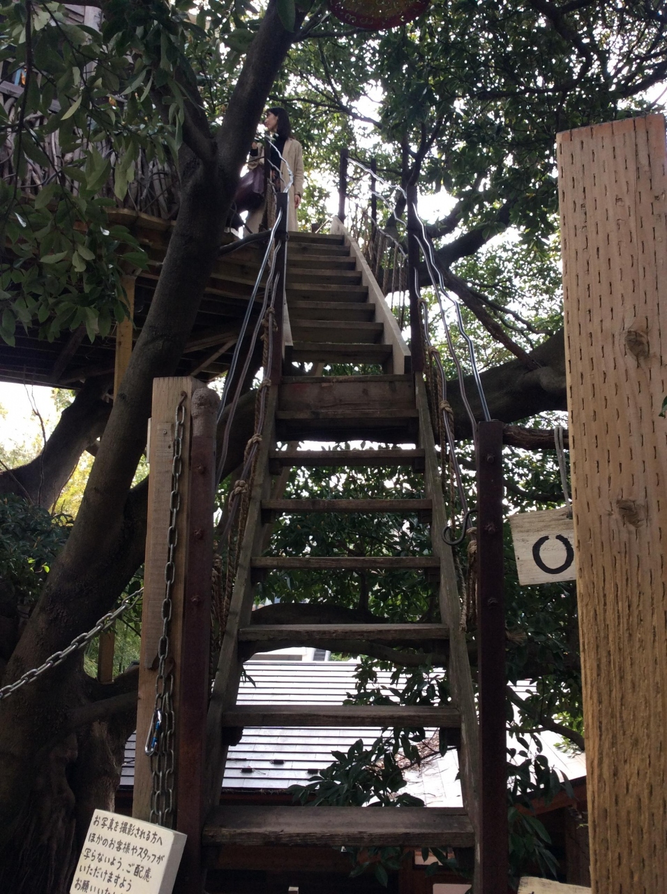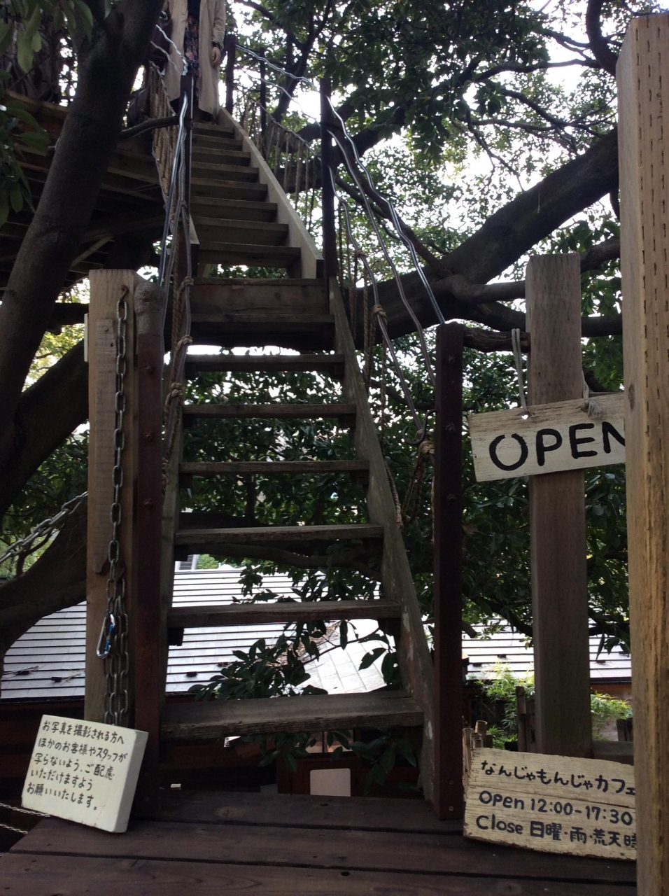 ツリーハウスなので、もちろん木の上にありますので、店内に入るのにちょっとした木登り気分を味わえます。登るには細い階段なので、ひらひらスカートやトンがったハイヒールはお勧めできません。ここではゆったりくつろげる服装で訪れることをおすすめします。