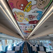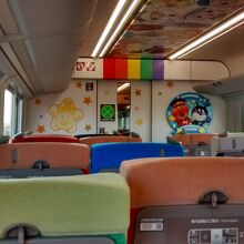 アンパンマン列車として運転している為、1号車はグリーン車と「アンパンマンシート」と称する普通車指定席、2号車は全て通常の普通車指定席、3号車は一部が通路の普通車指定席、残りが自由席、4号車は全て自由席でした。