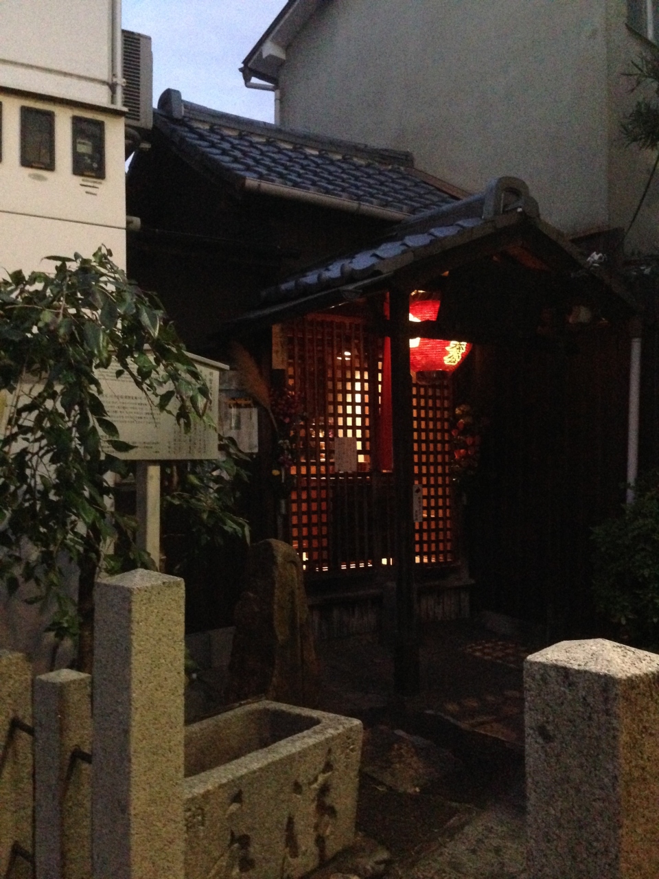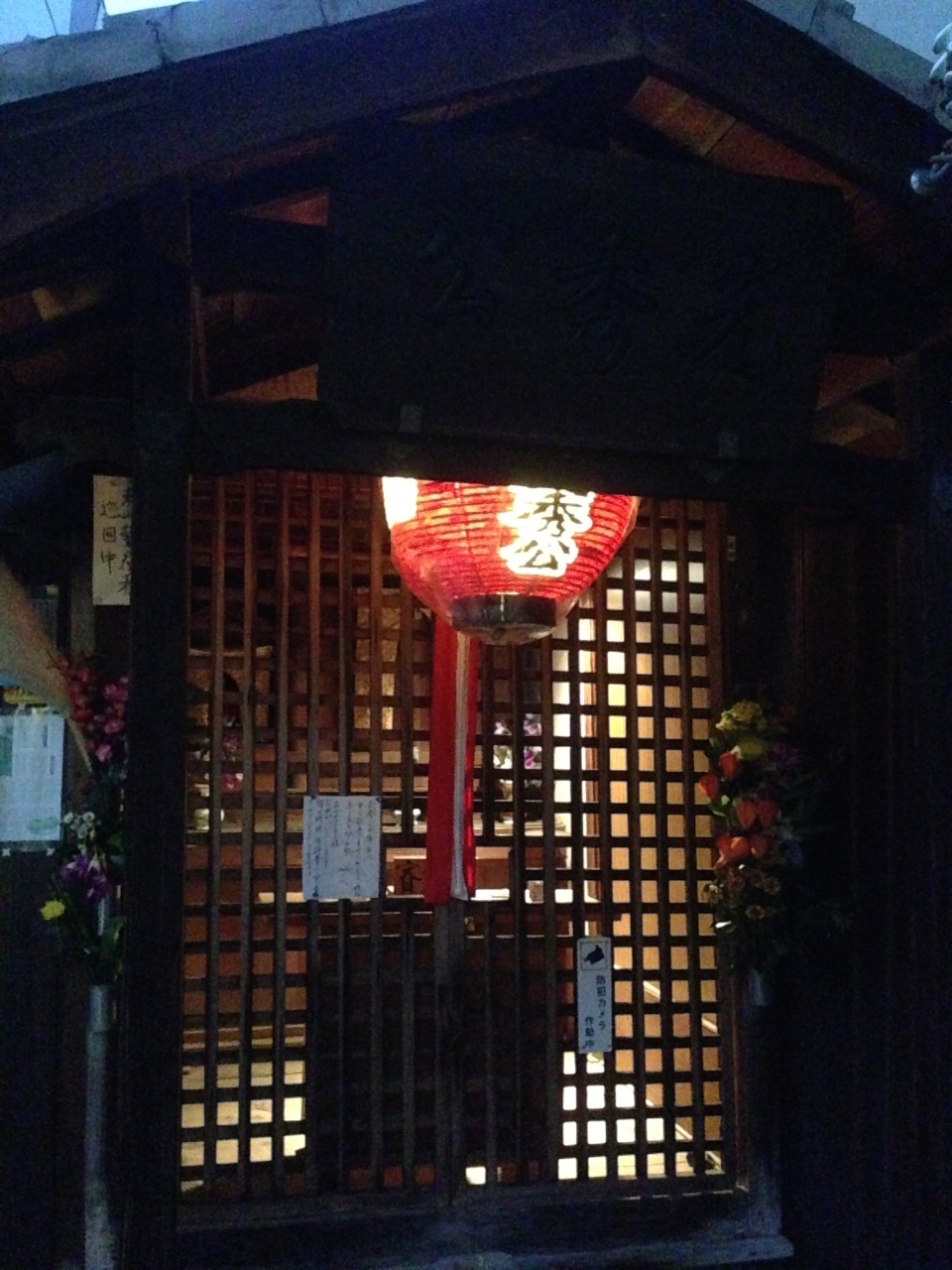 ほんとに小さな祠があるだけですが、地元の方々が維持・運営にあたっていらっしゃるようで、オートセンサーで人影を感知すると灯りがつくようになっています。