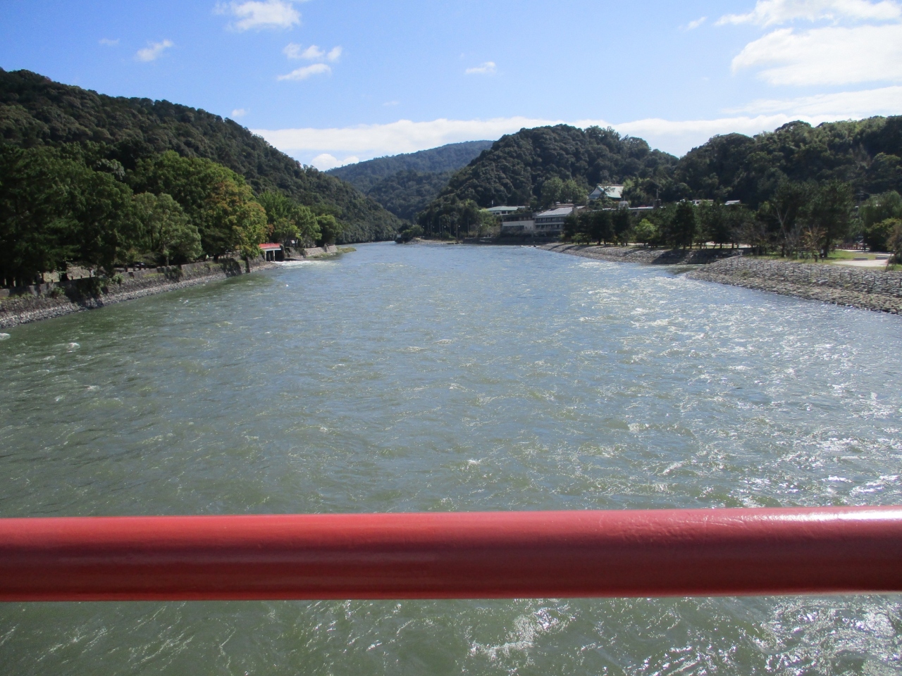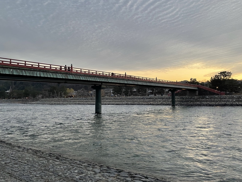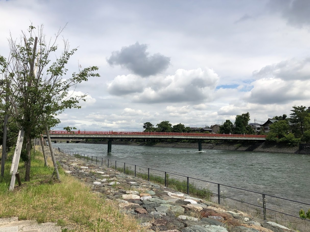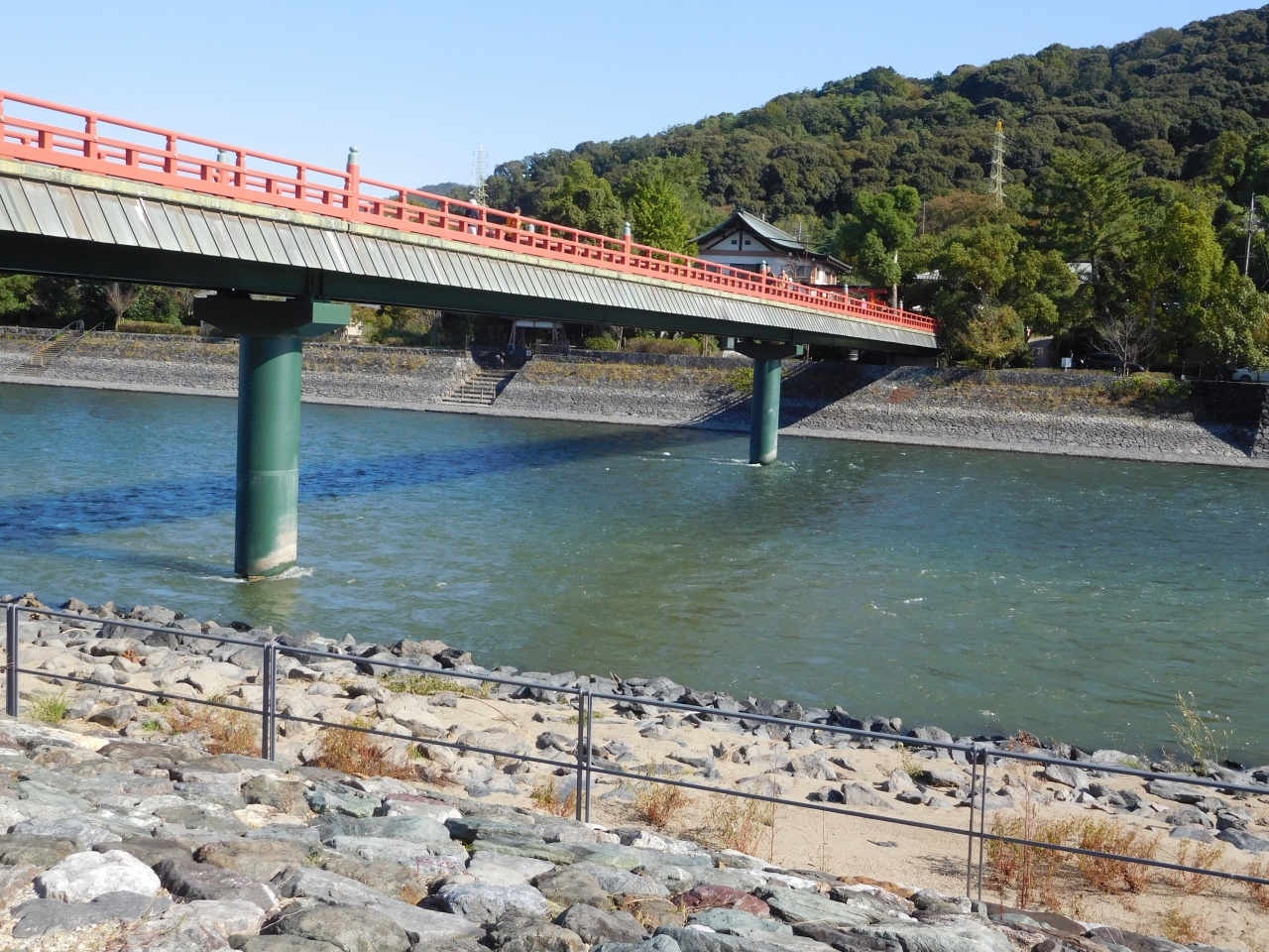 宇治川にかかる 赤い橋