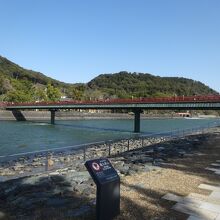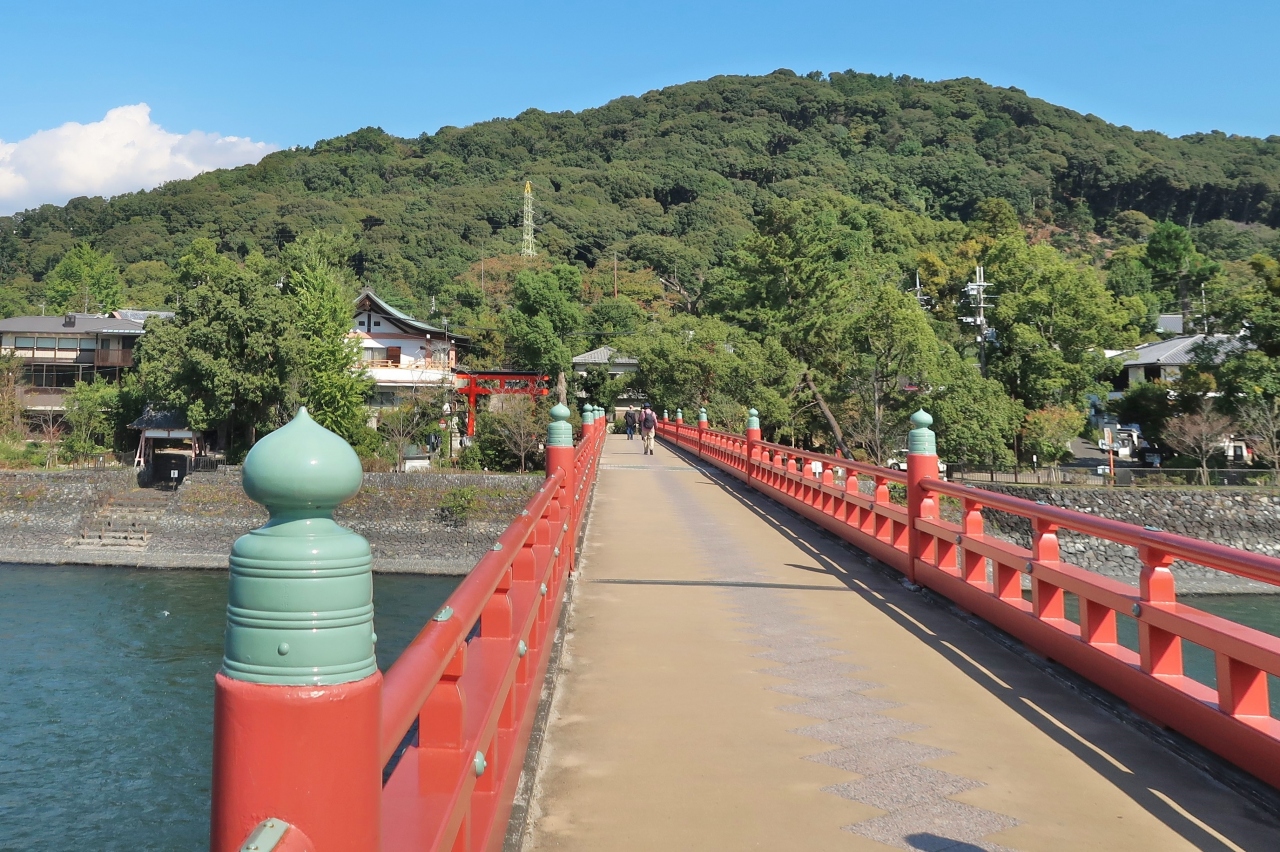 宇治川に架かる赤色の橋