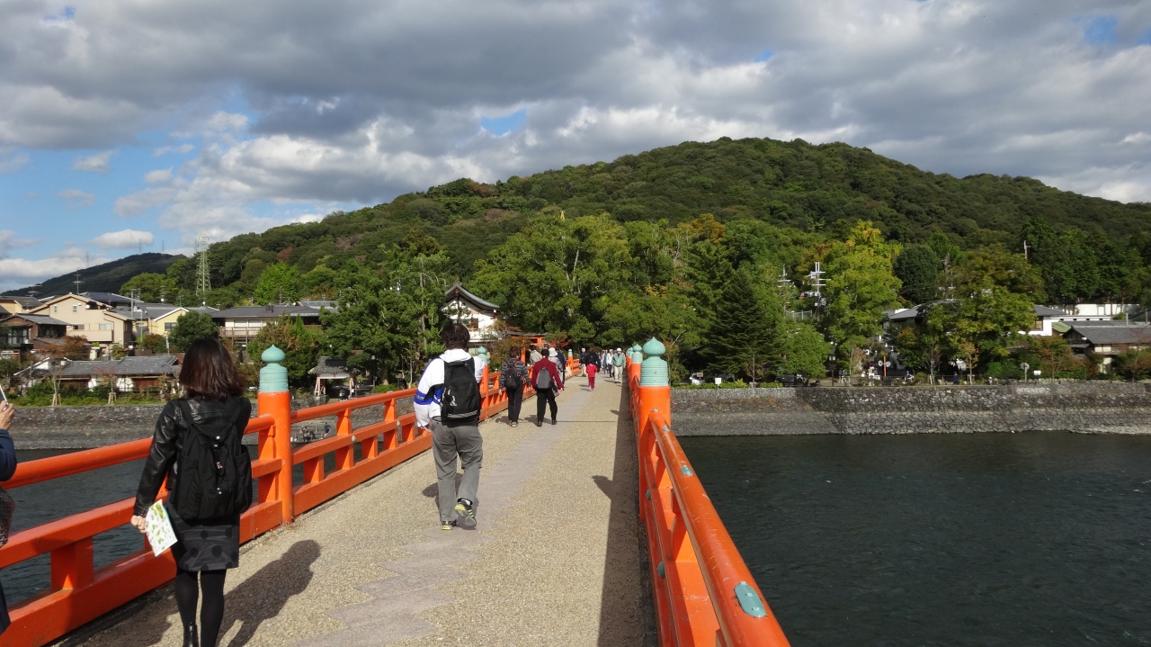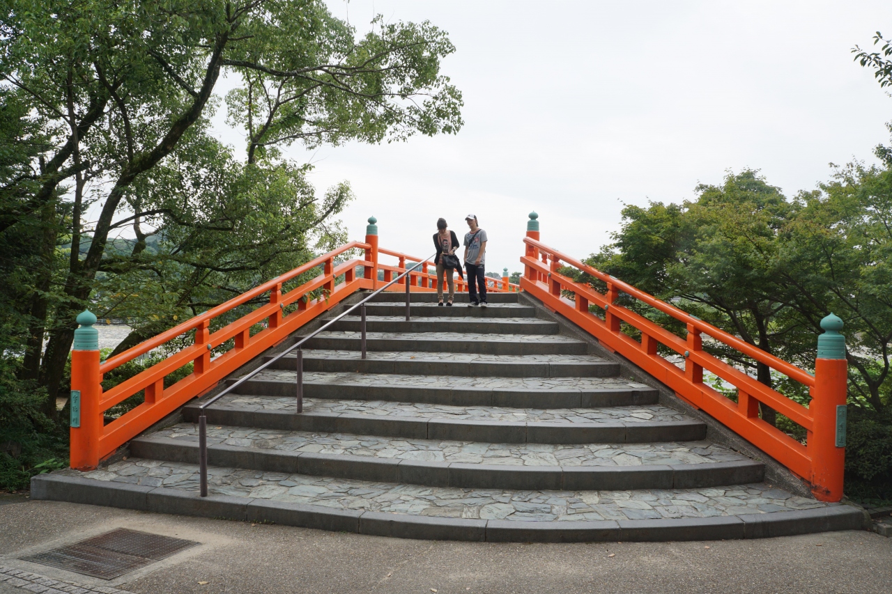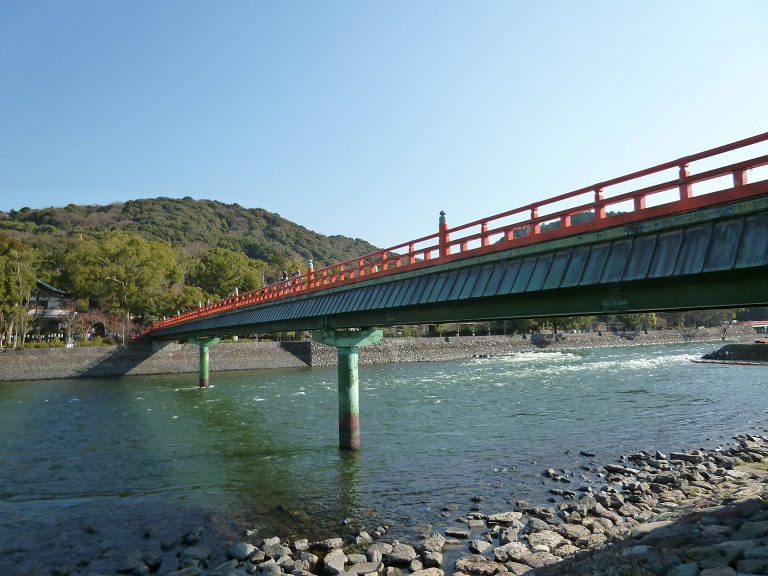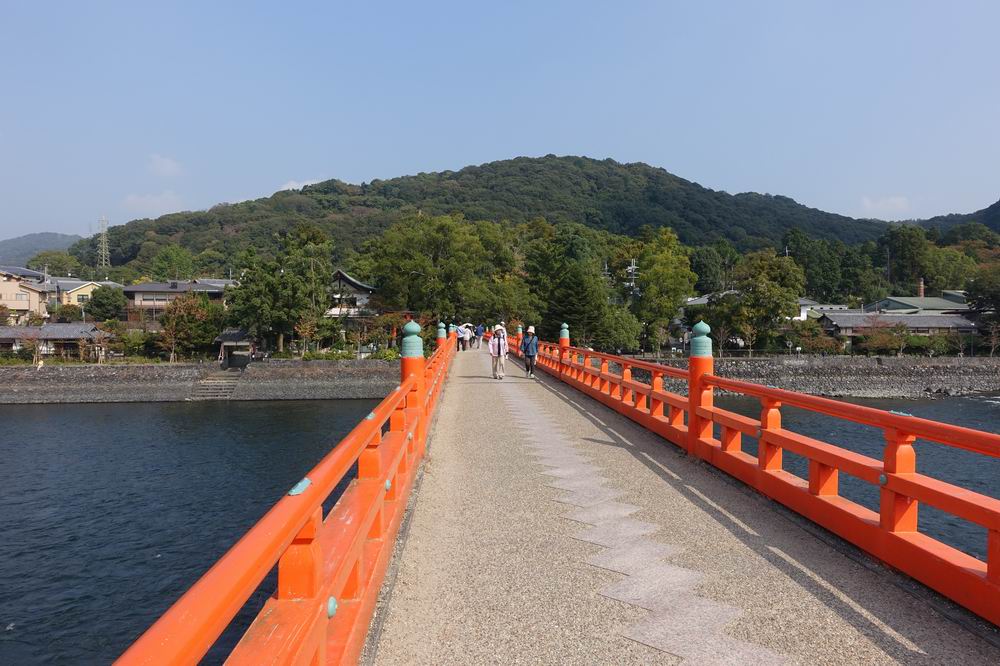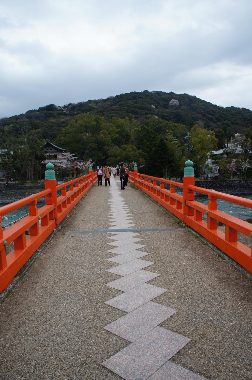 宇治神社と宇治公園の橘島を結ぶ赤い欄干の橋