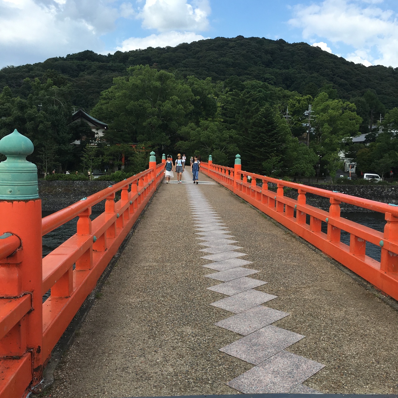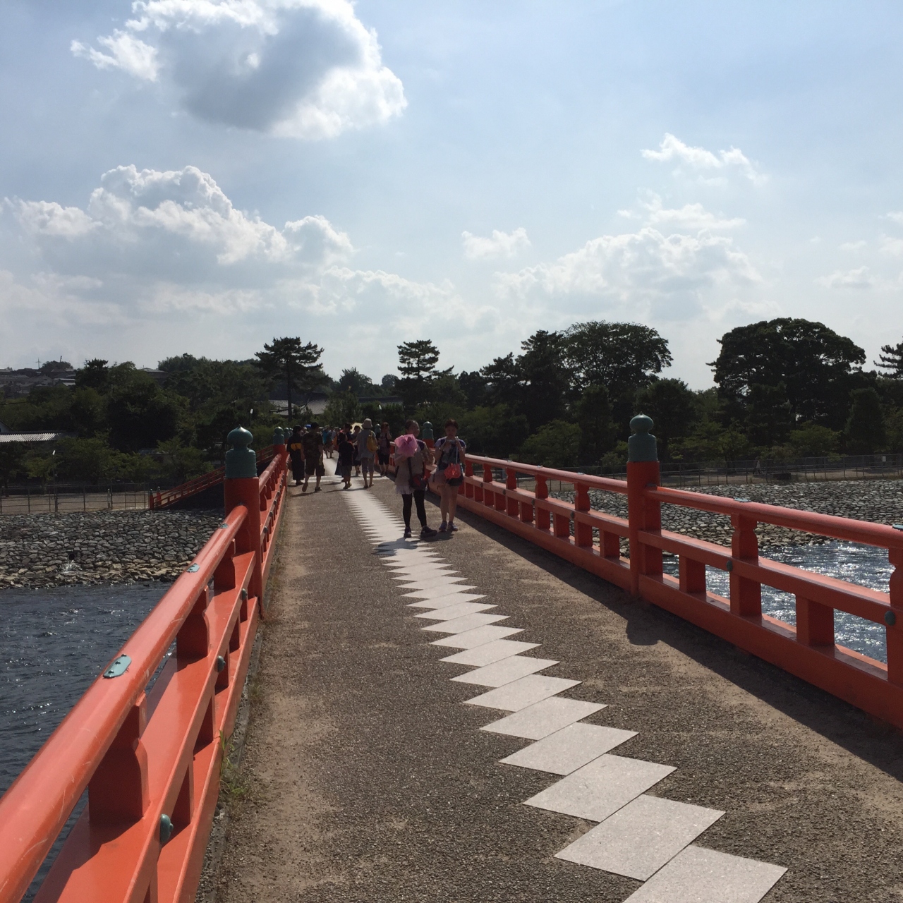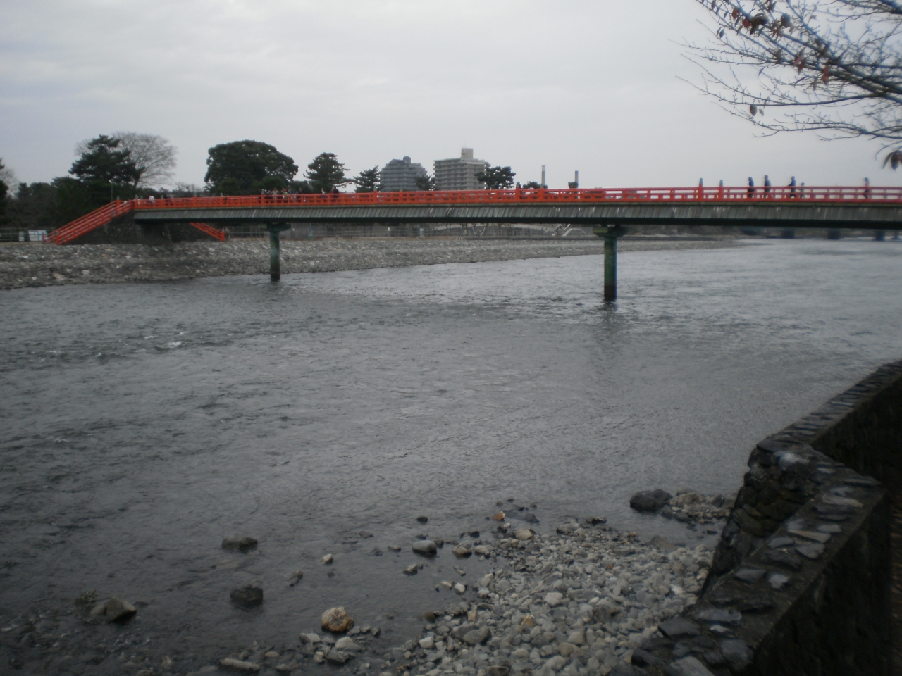 宇治神社と宇治公園の橘島を結ぶ赤い欄干の橋