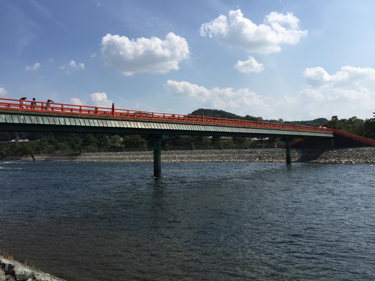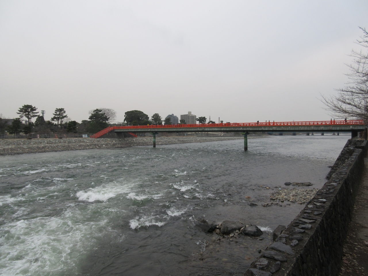 宇治川にかかる「朱塗りの橋」です