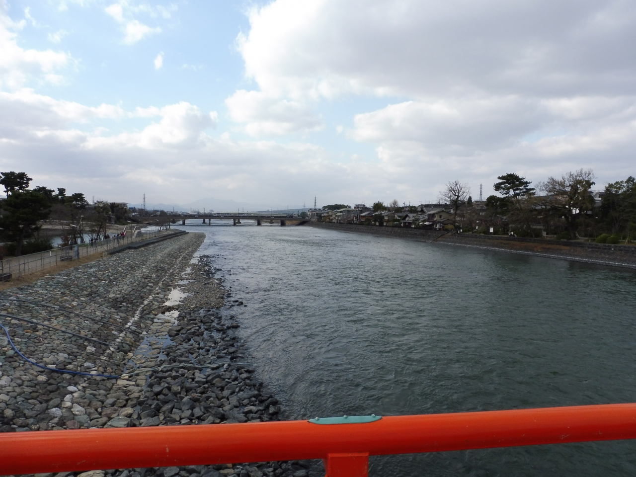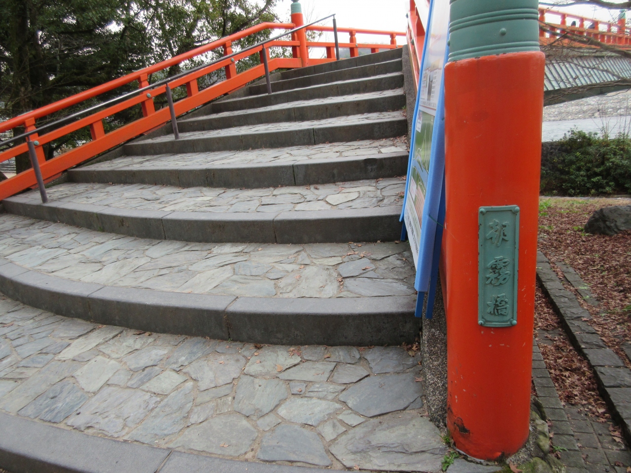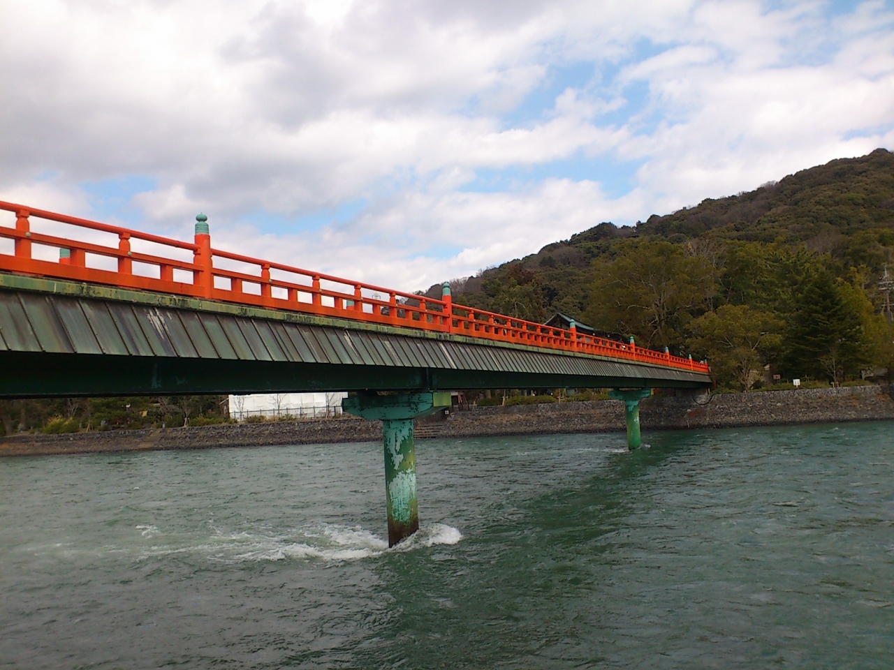 宇治川にかかる朱塗りの欄干