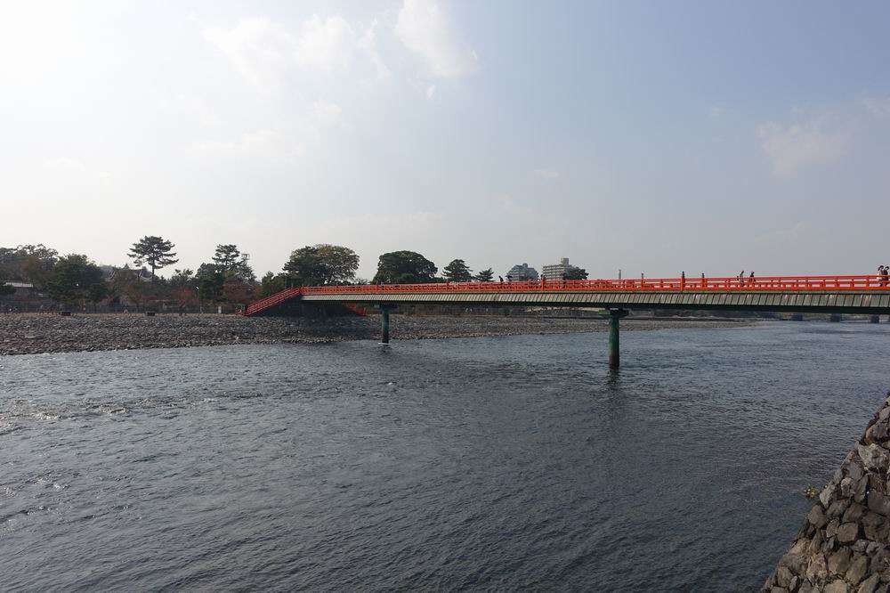 宇治川にかかる朱色の橋です。