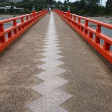ひときわ目立つ朱塗りの橋