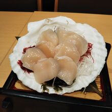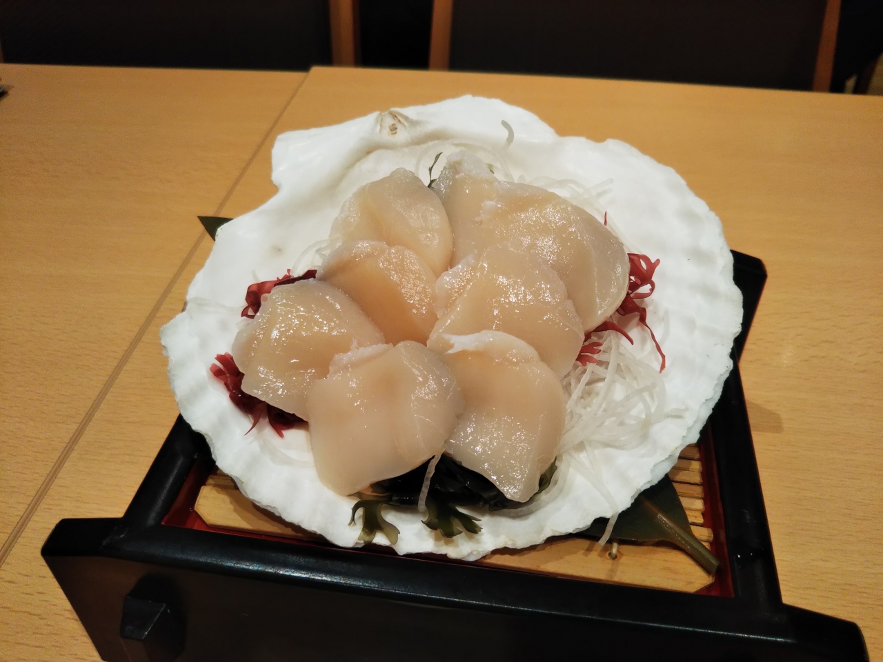 ホタテ刺しはぶ... 続きを読むつ切りなので、サイズ感は大きいのか小さいのか、サイズにより驚きなどは一切ありませんでしたが、味は独特の甘味があって美味しかったです。