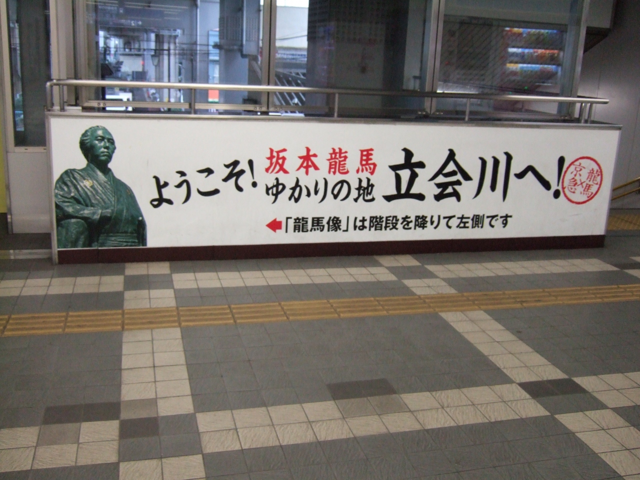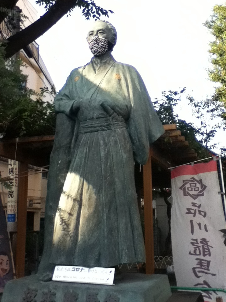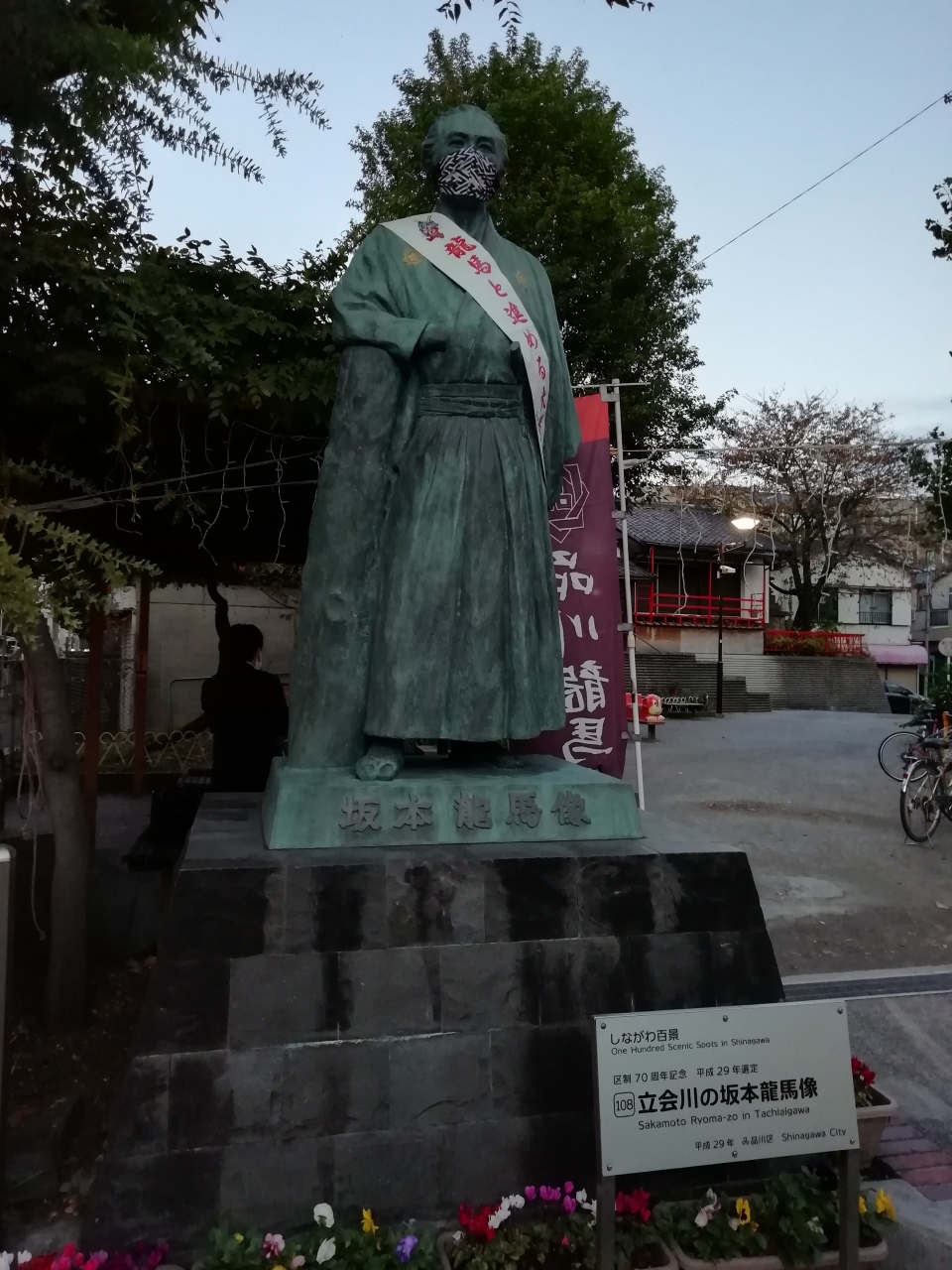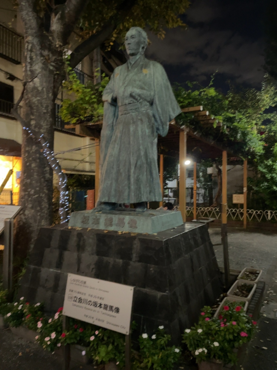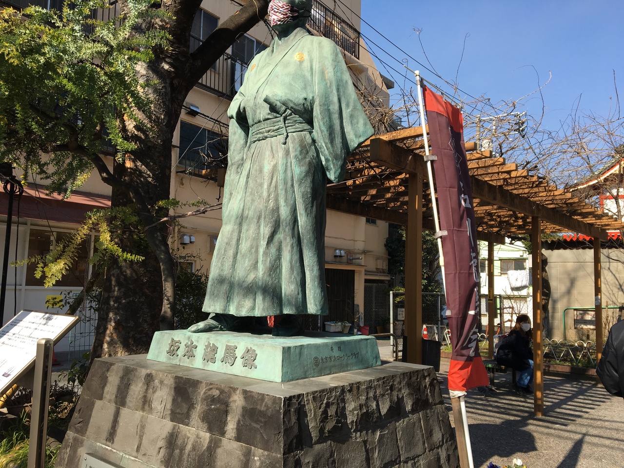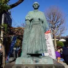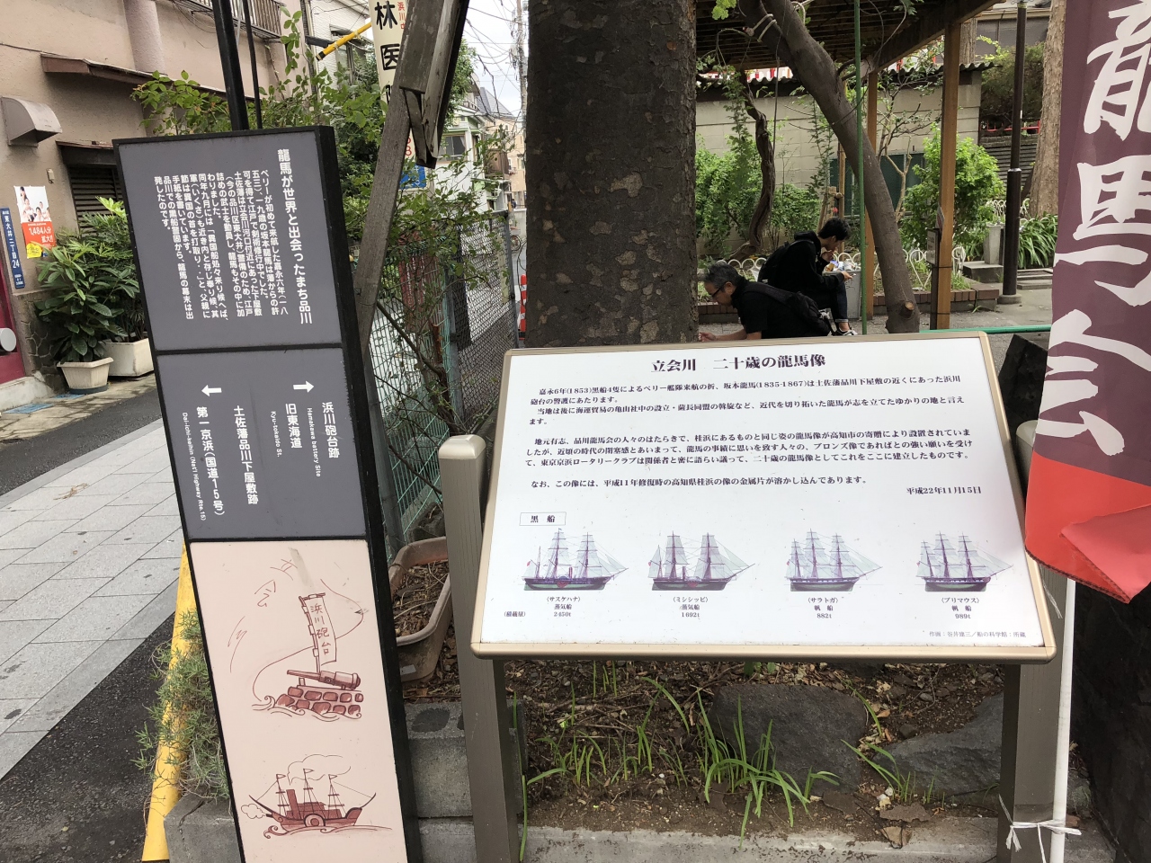 京急本線の急行電車が停車する立会川駅から徒歩1分、商店街に面する公園の入口に坂本龍馬銅像があります。旧東海道を北から歩いて... 続きを読むくると、右に行くよう看板が出ています。この公園ではよく地元の坂本龍馬商店街の方々がイベントをやっています。