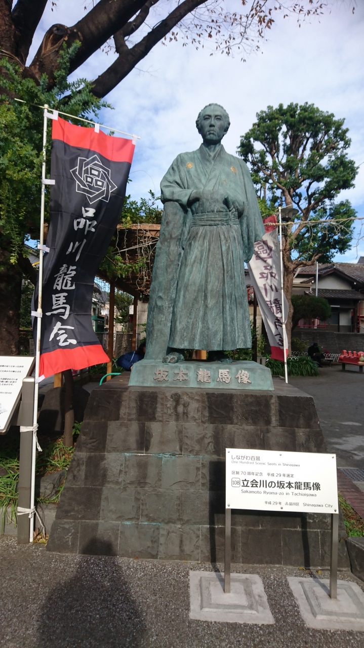 ここの銅像はせいぜい2mくらいでしょうか。高知桂浜の階段上にある巨大な銅像とは大きさこそ異なりますが、龍馬ゆかりの地であることは間違いないようです。ここから徒歩で大井競馬場に行くこともできます。