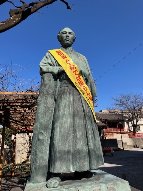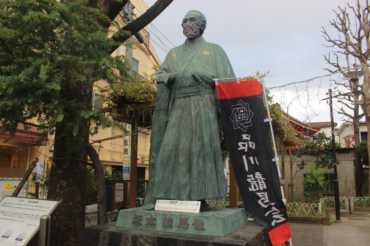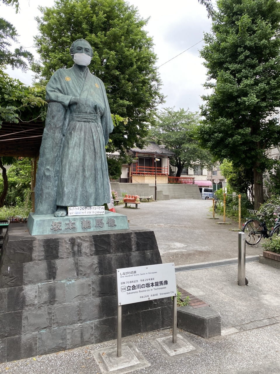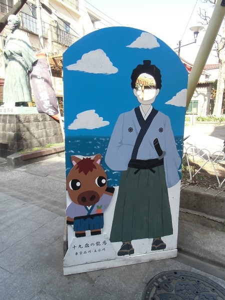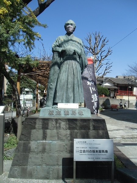 坂本龍馬ゆかりの地立会川駅前にある龍馬像