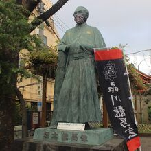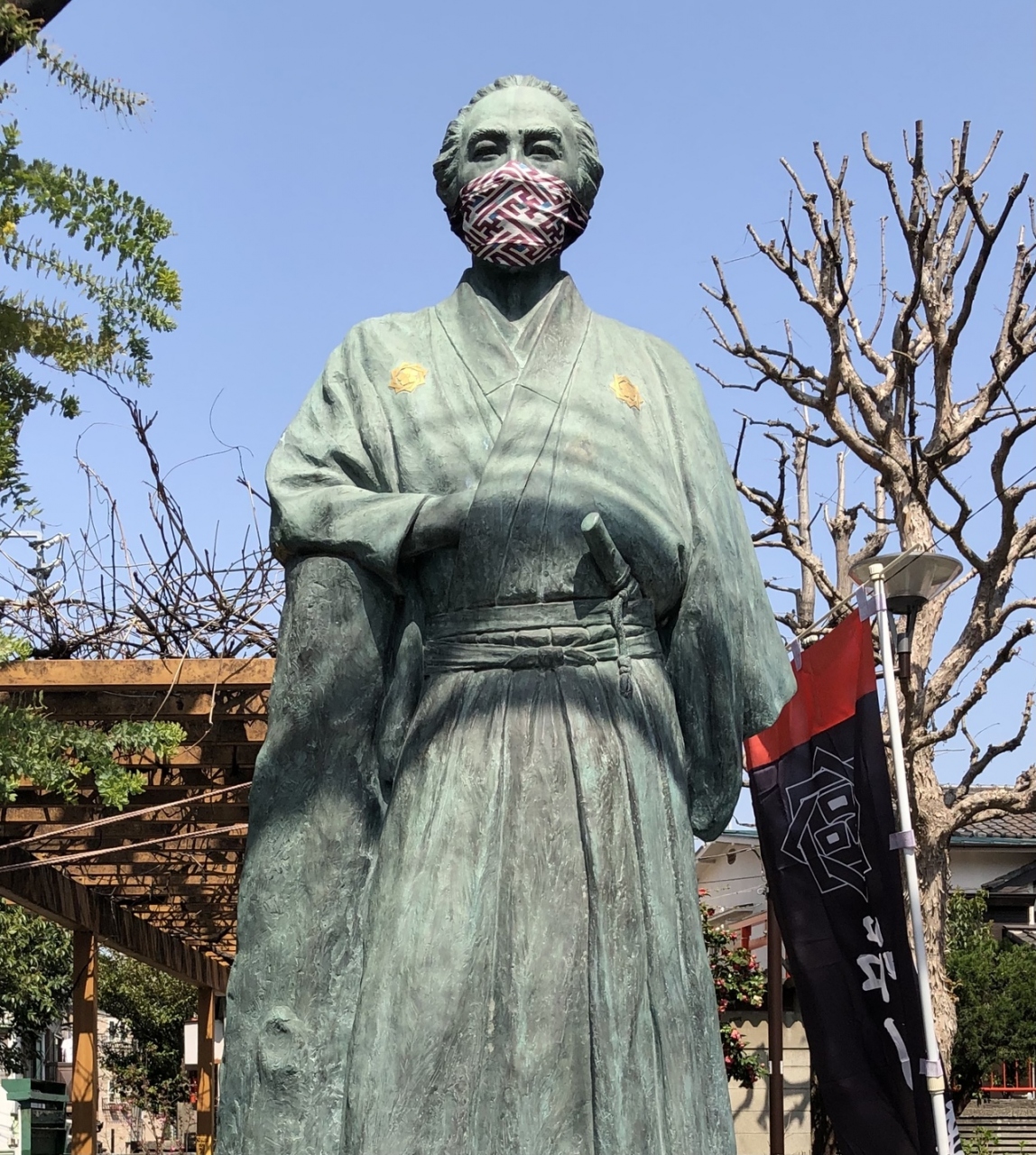 京急立会川駅前にある20歳ごろの坂本龍馬像