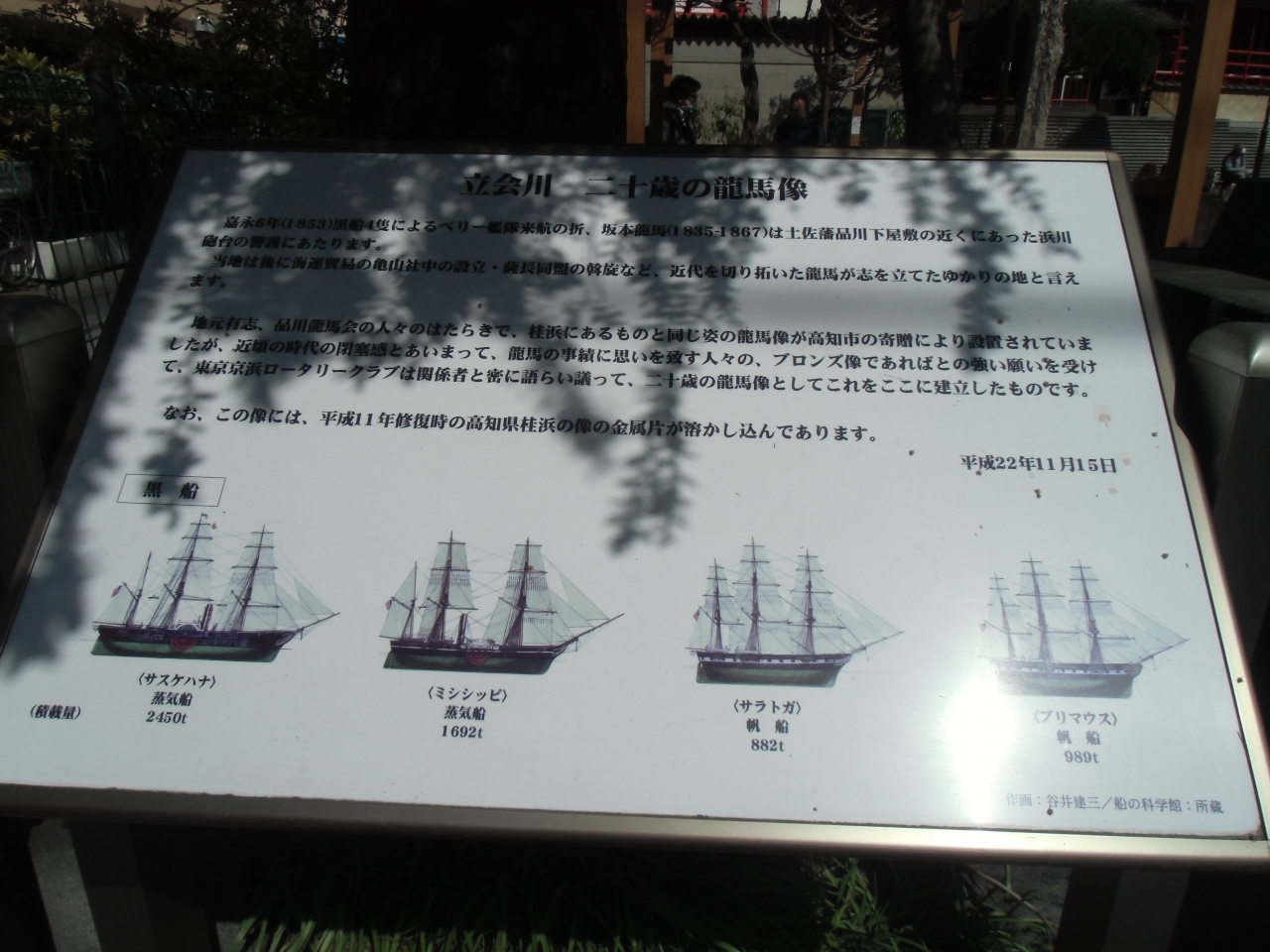 説明板によると、ペ... 続きを読むリーが初めて来航した嘉永6年(1853)、19歳の坂本龍馬は藩からの許可を得て江戸で剣術修行中でした。