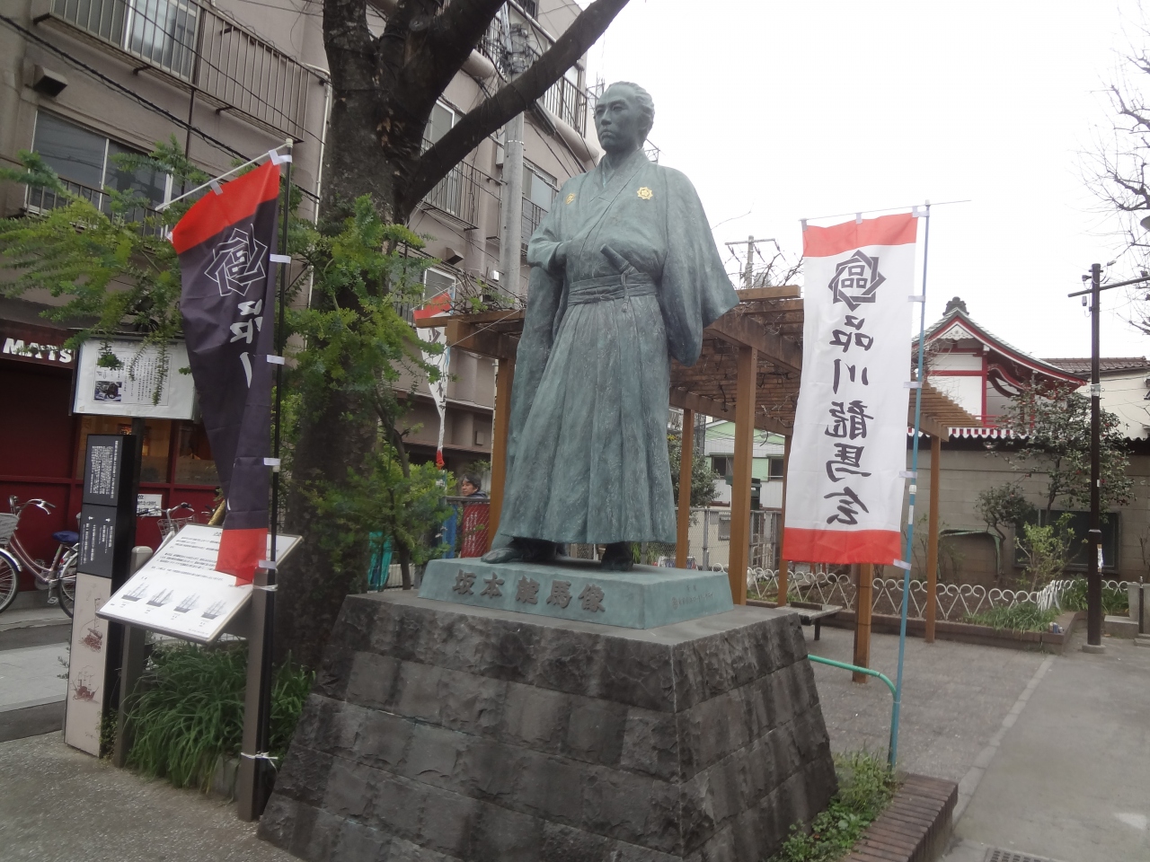 幕末、ぺりー来航時に立会川の土佐藩で沿岸警備にあたった龍馬ゆかりの地で若かりし龍馬像に会って来ました!!