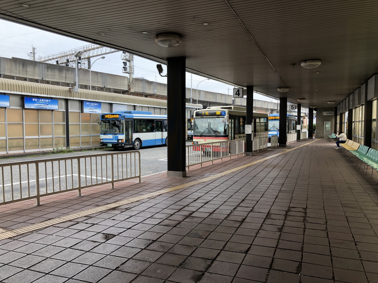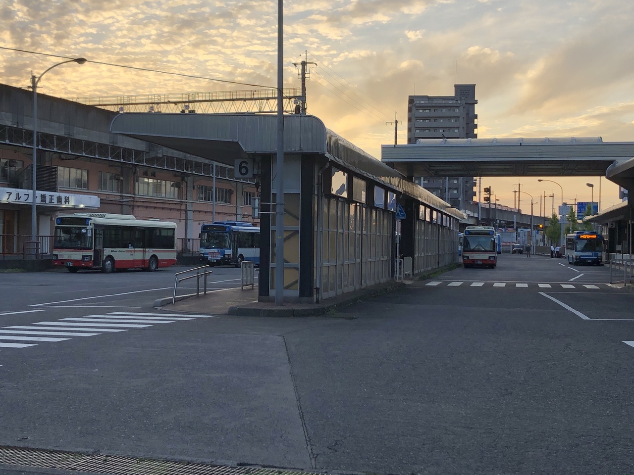 4番乗り場で7時発の砂丘東口経由岩井行きを待つ
