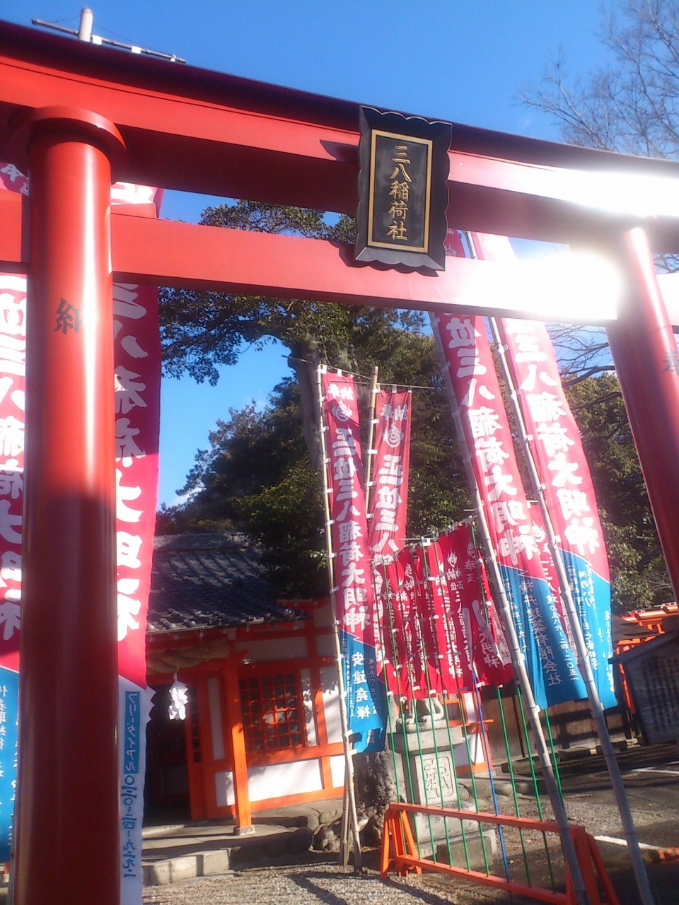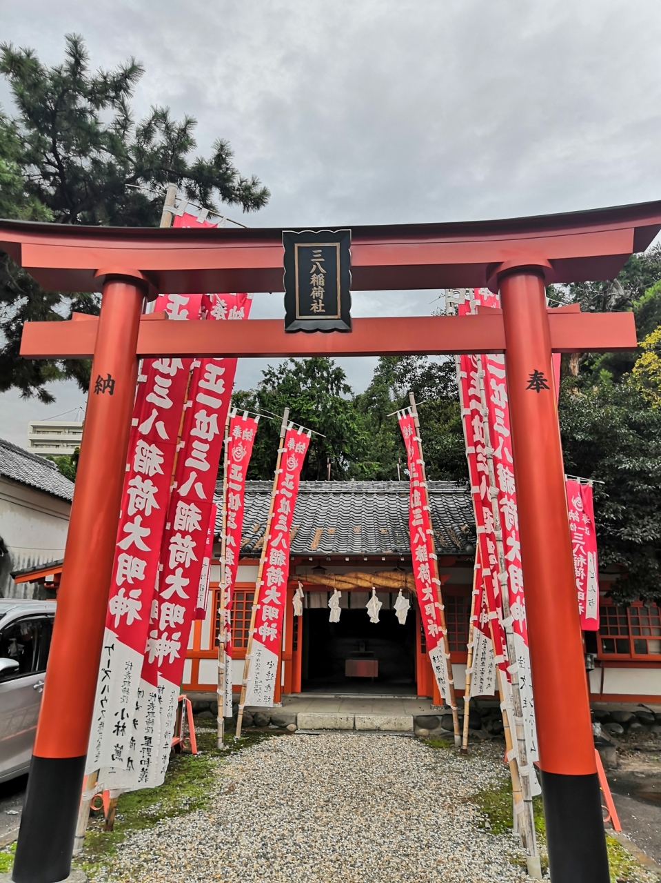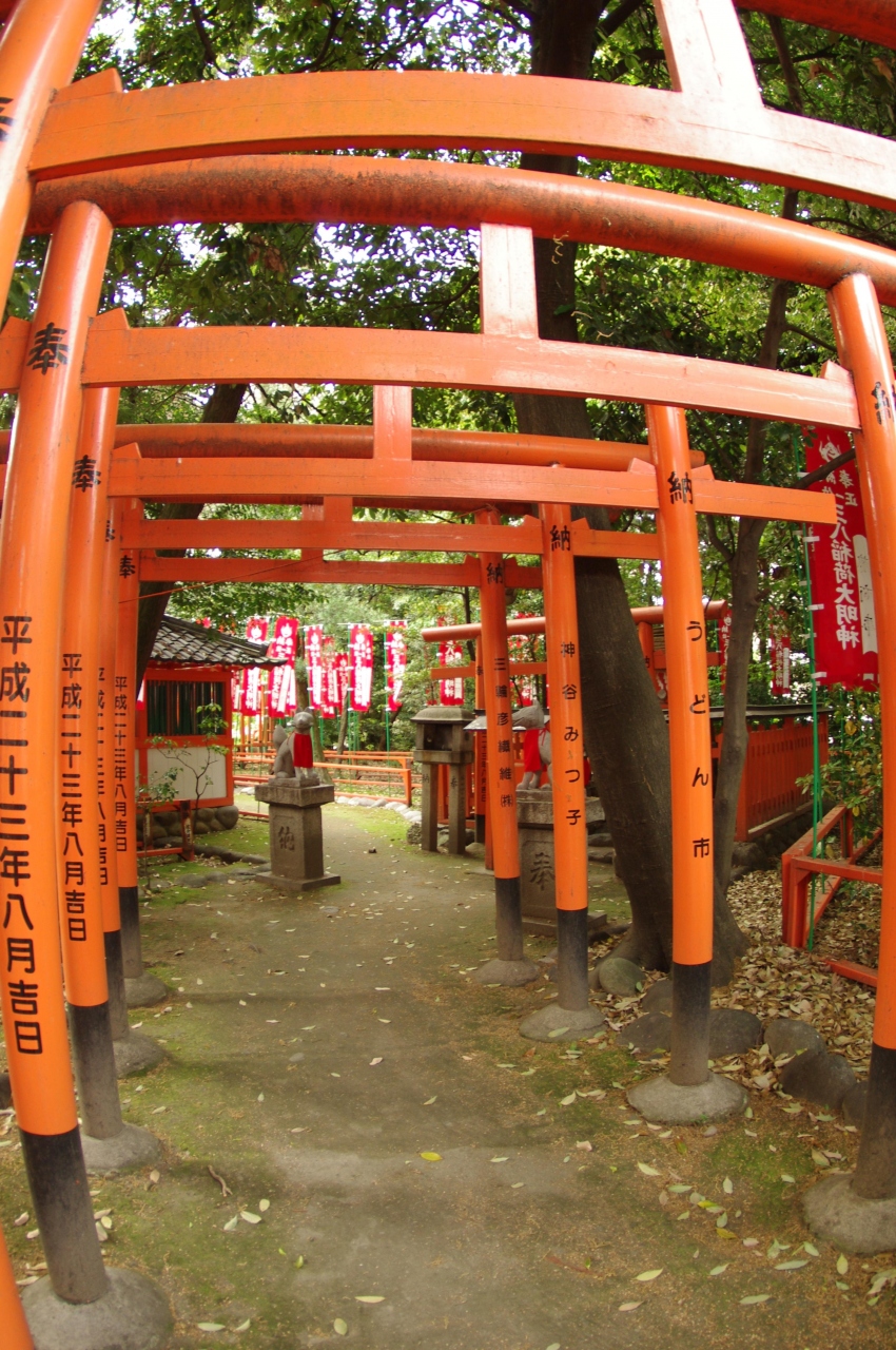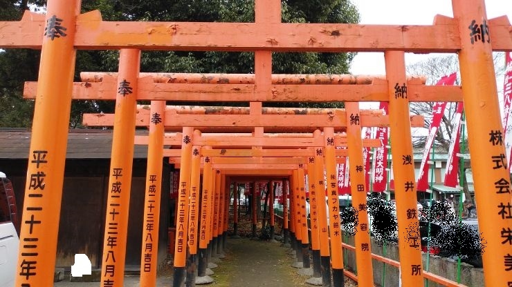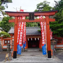 稲荷神社らしいたくさんの赤い鳥居とのぼり