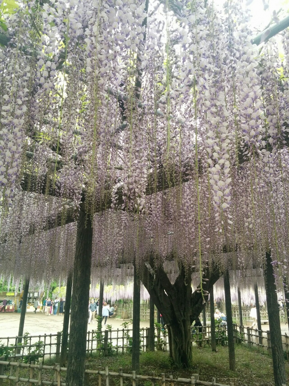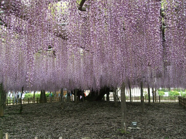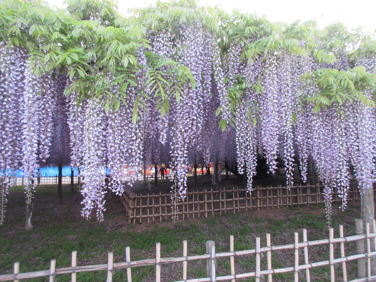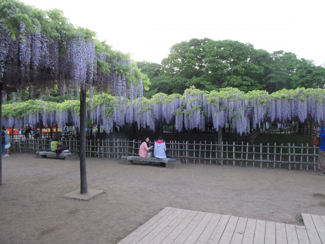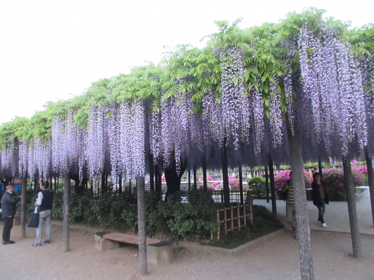 「藤」は想像以上に素晴らしく、2つの大きな藤棚の、1m以上の大きな「藤のカ-テン」は見事でした。それ以外にも数種類(5種類?)の「藤」があり、大藤や白藤を見ながら池の周りの散歩は素敵でした。来年は何処にも寄らないでここに来ます。