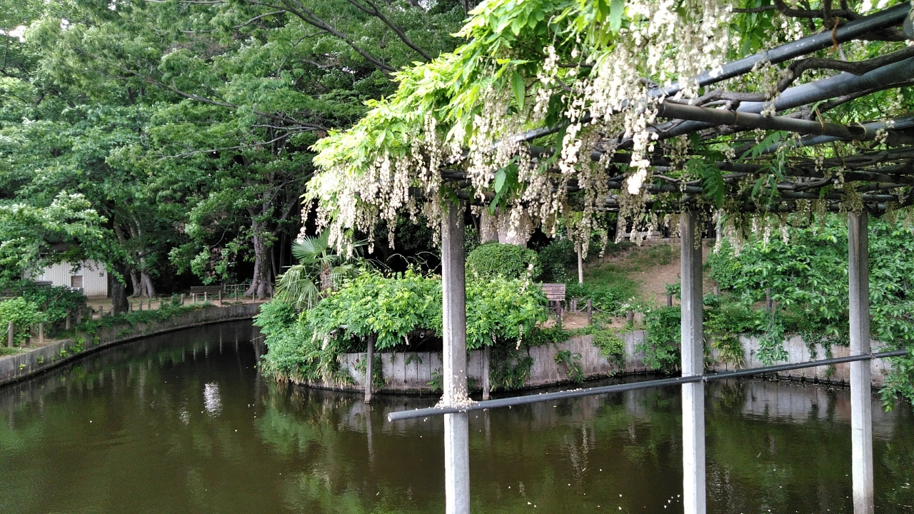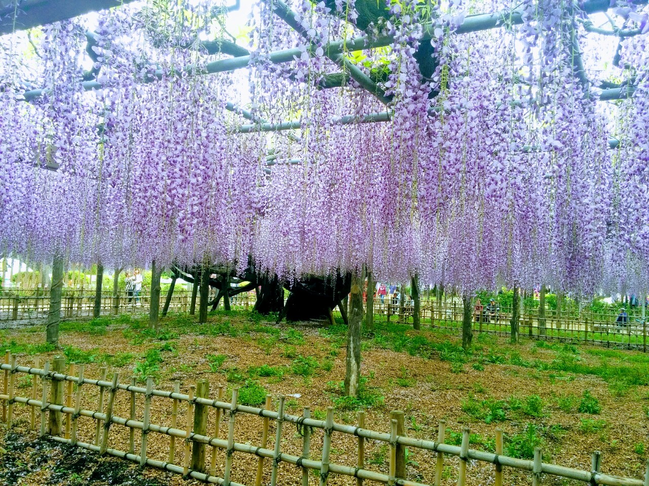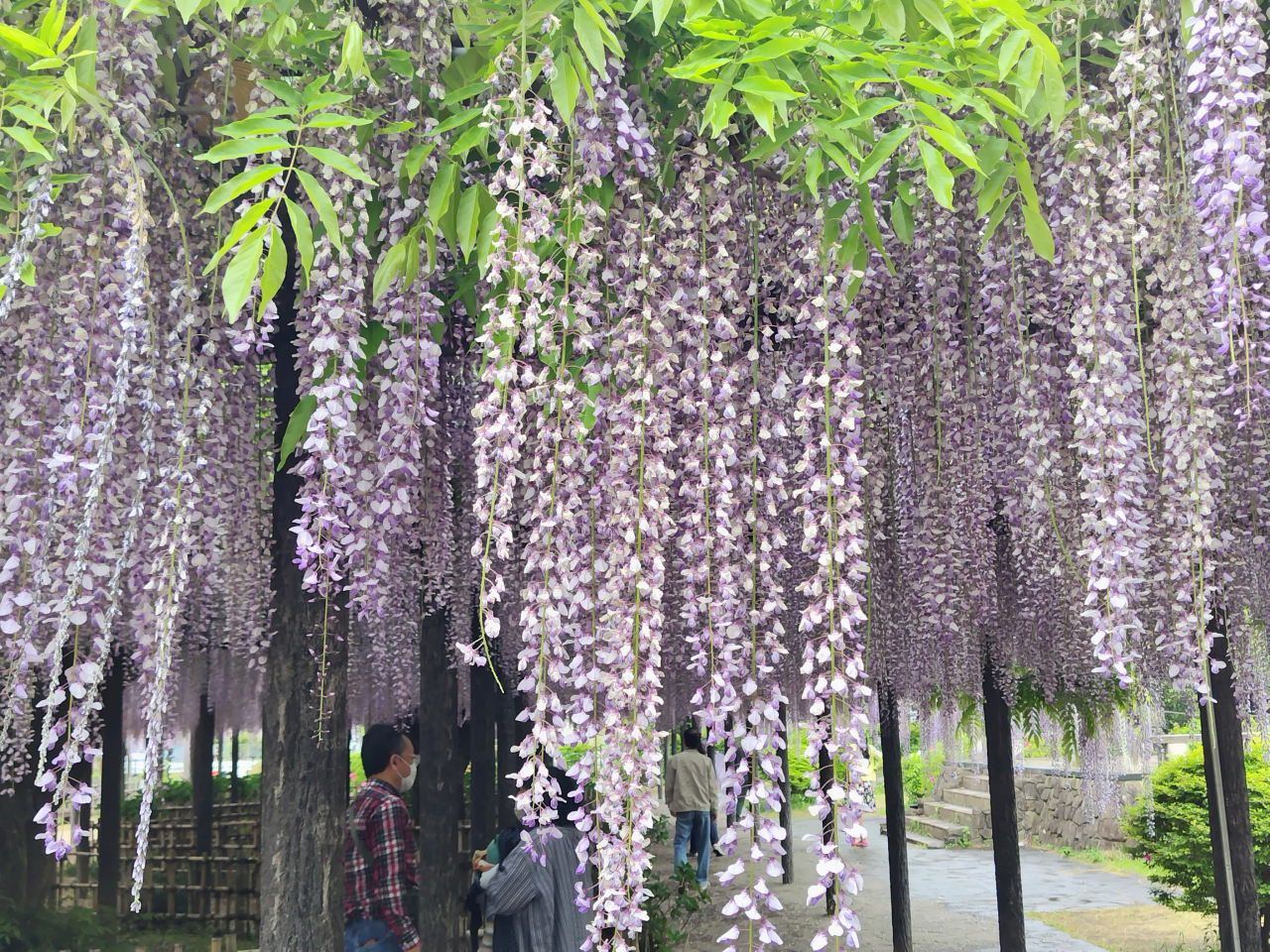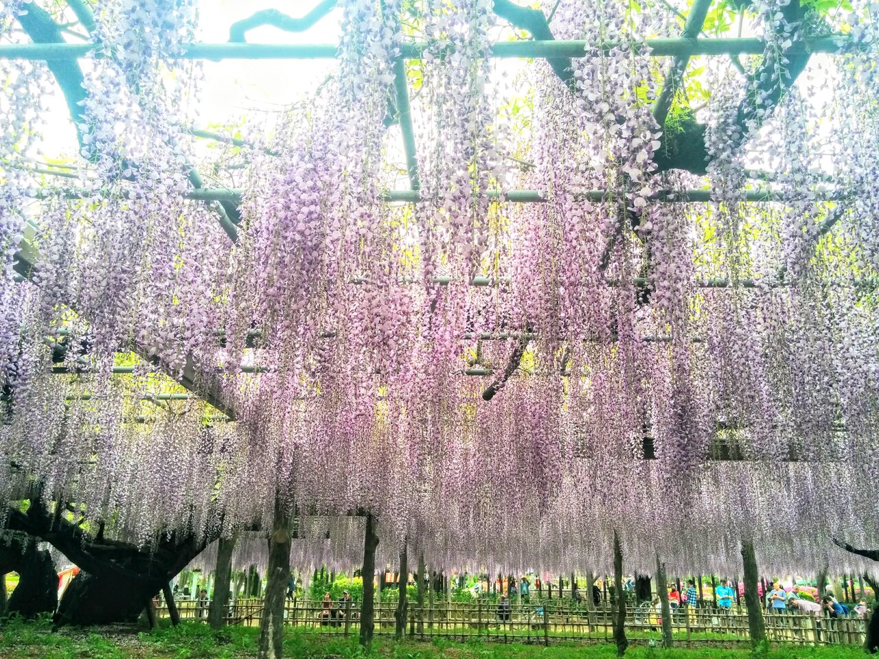 「藤」は想像以上に素晴らしく、2つの大きな藤棚の、1m以上の大きな「藤のカ-テン」は見事でした。それ以外にも数種類(5種類?)の「藤」があり、大藤や白藤を見ながら池の周りの散歩は素敵でした。来年は何処にも寄らないでここに来ます。