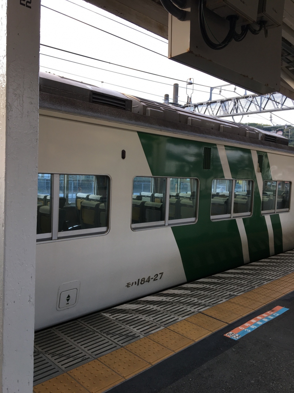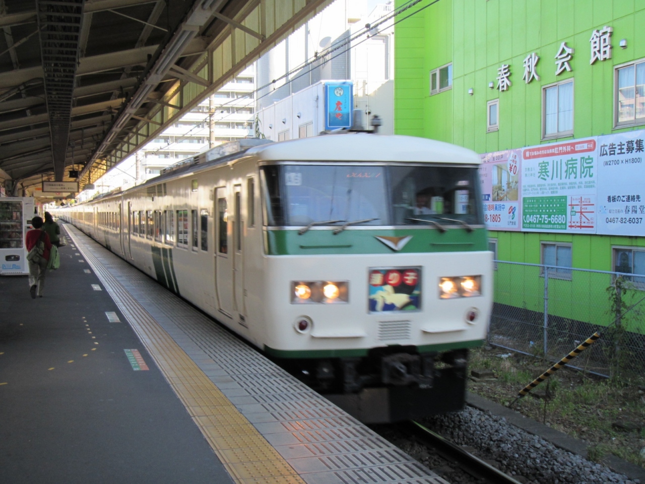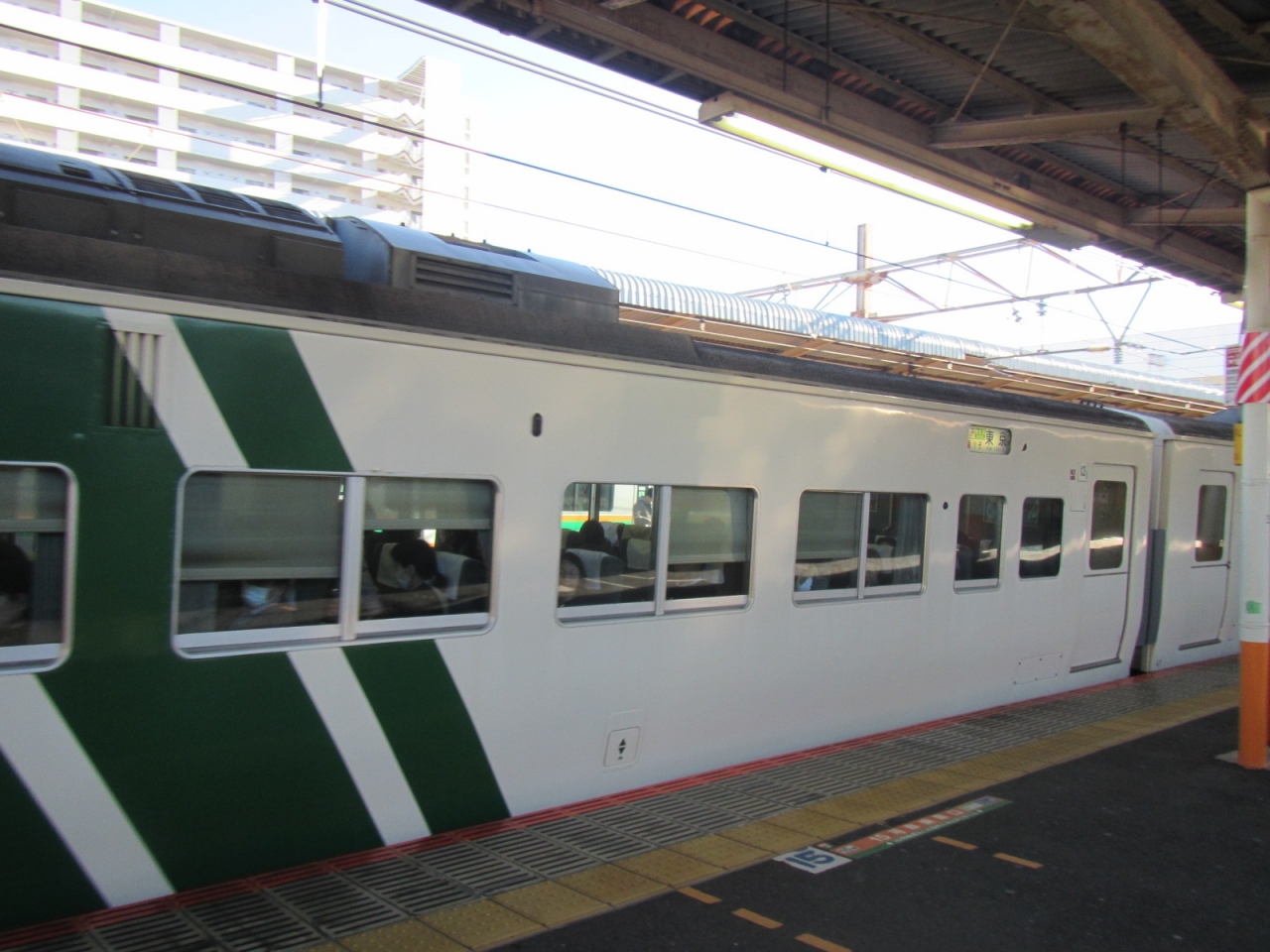 大船駅にて、踊り子105号伊豆急下田、修善寺行15両編成